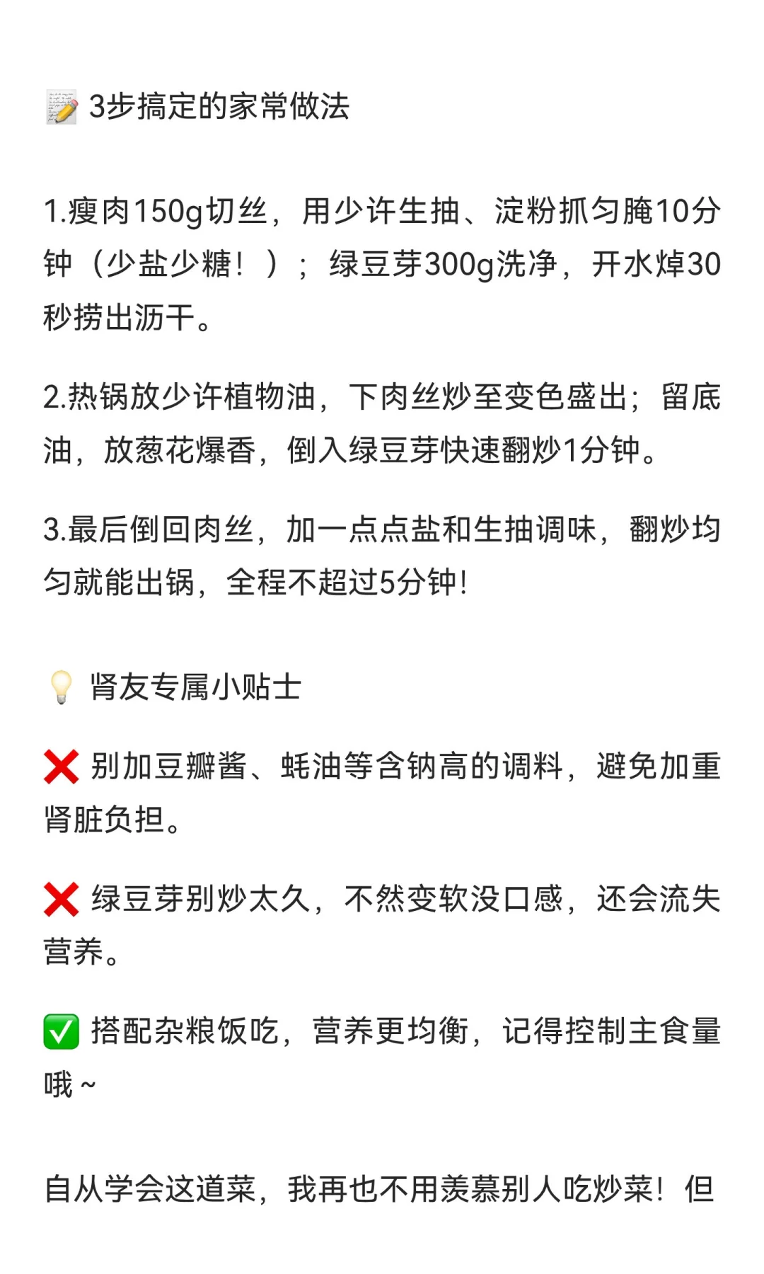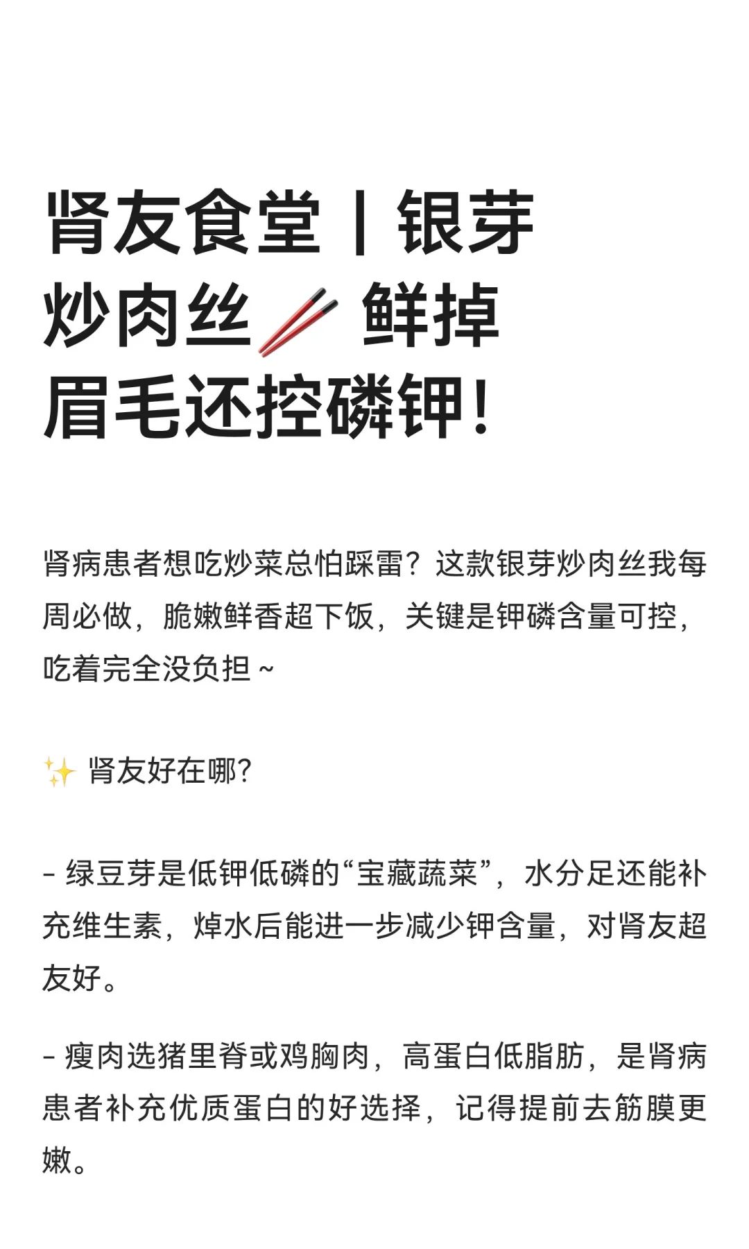 肾友食堂|银芽炒肉丝🥢 鲜掉眉毛还控磷
