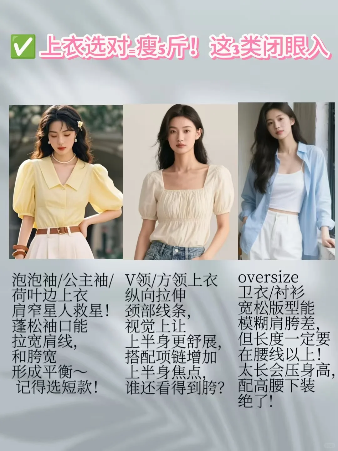 ✅ 优点要放大:细腰、轻量感上半身是我们的王牌!一定要露腰线、给上半身加“存在感”