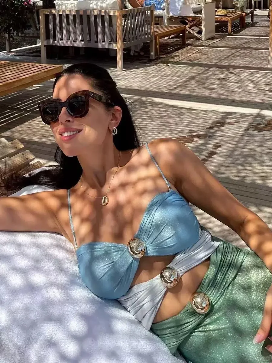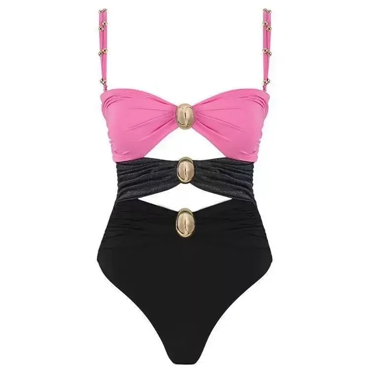• 风格背景:这种设计融合了复古泳装的廓形与现代时尚的装饰元素,金属扣和渐变色彩是近年泳装设计的流行趋势,既满足功能性又能展现穿搭品味,常出现在时尚品牌的度假系列中。
