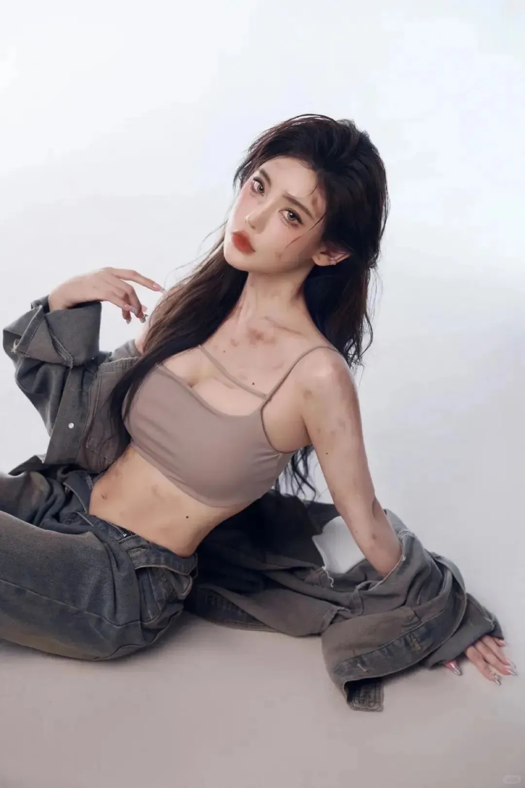 💥💥战损装纯色背景写真,酷辣美姿势大公开💥💥