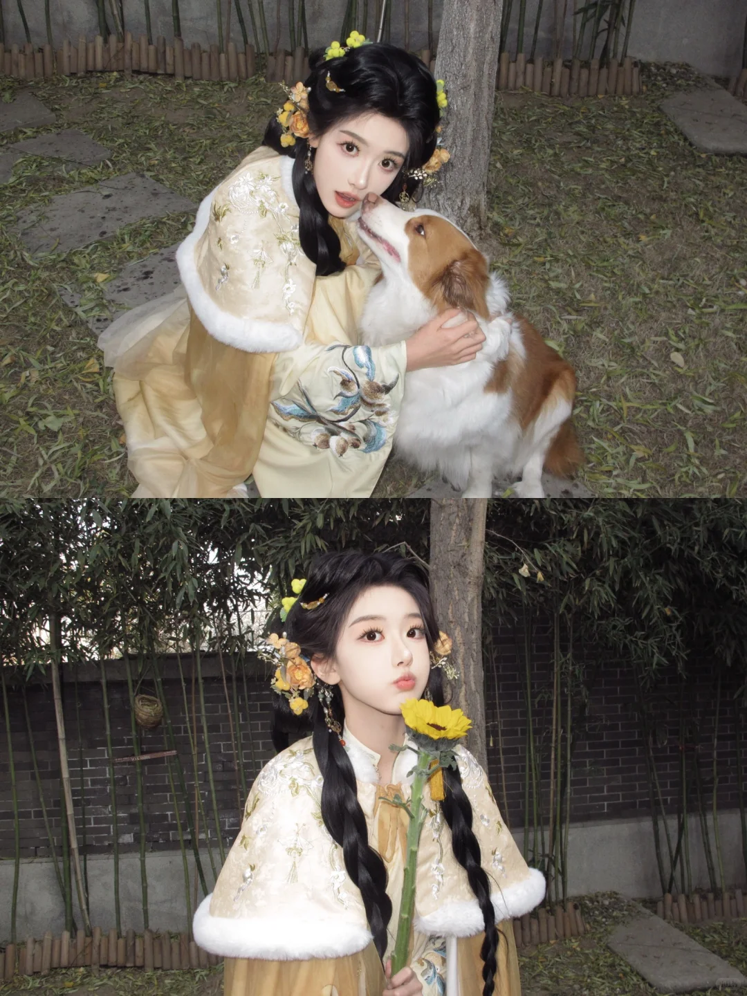 💬价格:198(今天的汉服有外套所以没选斗篷 但也是需要额外收费的)押金300