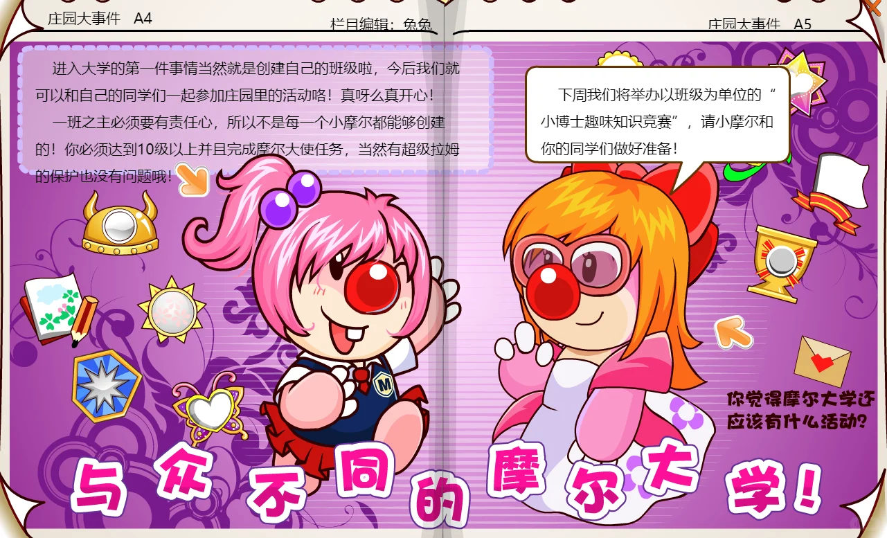 一班之主必须是有责任心的小摩尔哦,还可以自己装饰班级,在留言板上留言,以班级为单位参加竞赛哦