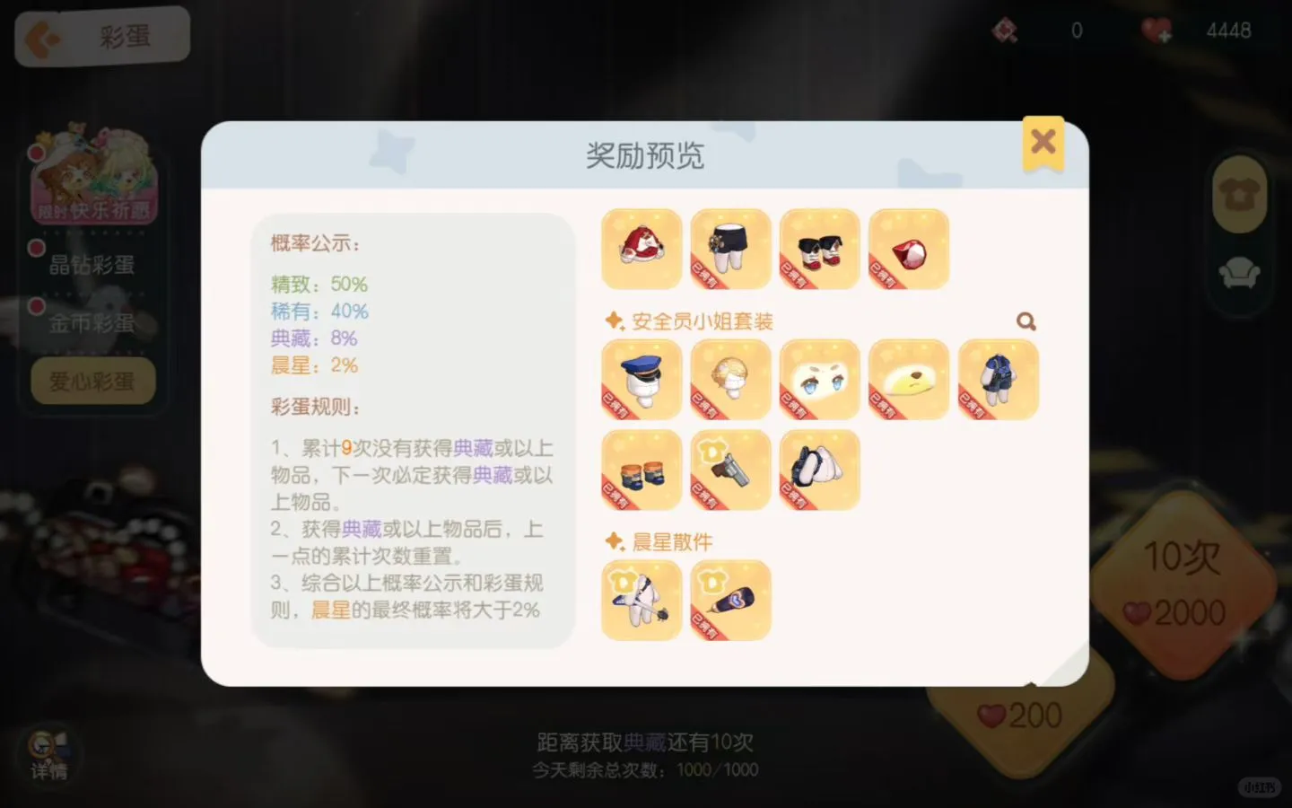 限时彩蛋:星海之前全齐(包括星海),萌市集全齐,友晴天全齐,熊次元全齐,星际4全齐,正念全齐,快乐4全齐