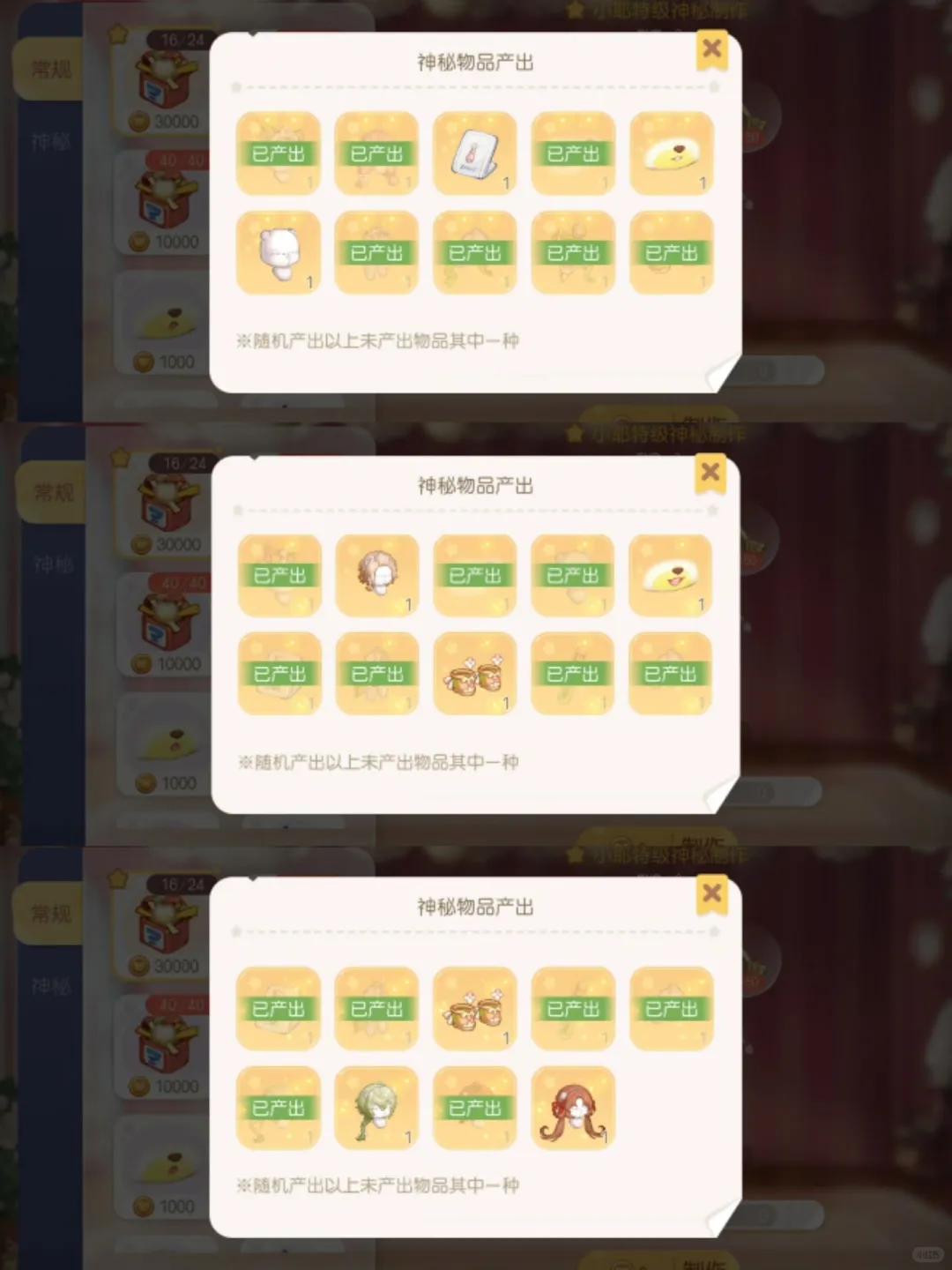 亮点:集卡全齐,小耶高级端盒,花卉女头,羊村清盘,susumi齐,牙仙清盘