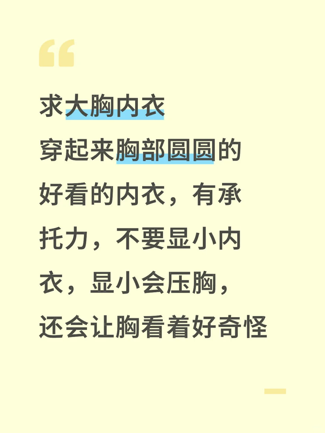 感觉市面上大多内衣都是为了让胸部显小,但效果就是胸部小了,胸形状很不好看,还压胸部,穿久了下垂效果没改善。如果要大胸圆圆好看有承托力的内衣,不要显小内衣,显小会压胸,胸部看着好 看