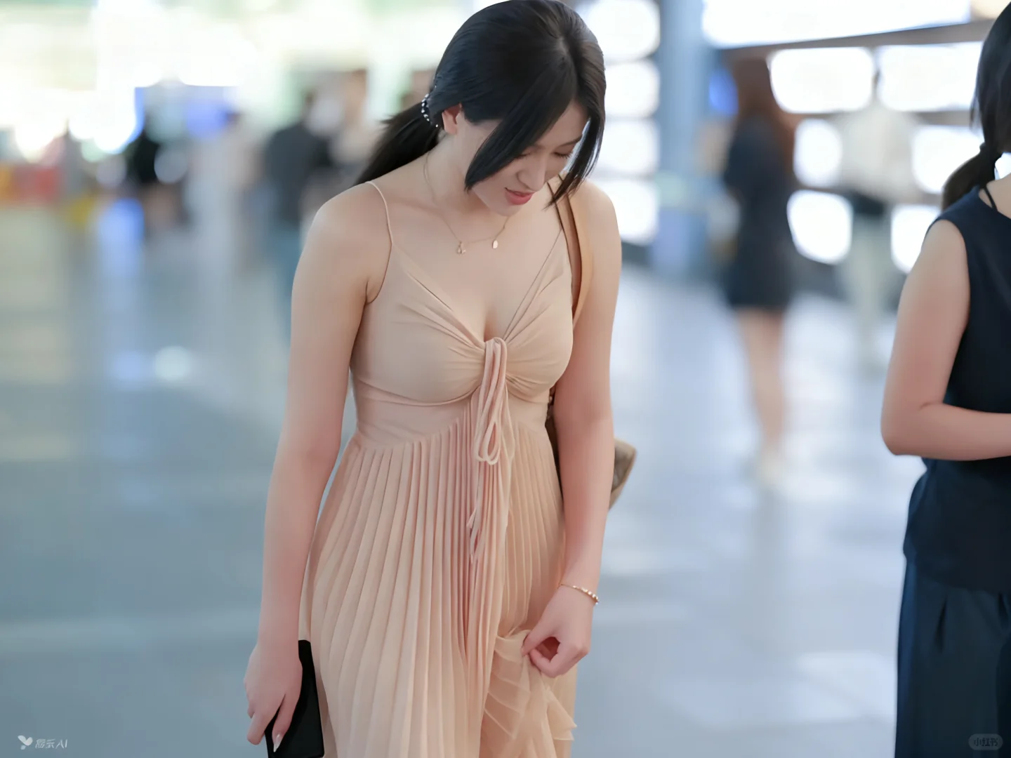 约会穿搭:裸色吊带裙+简约配饰的轻熟优雅