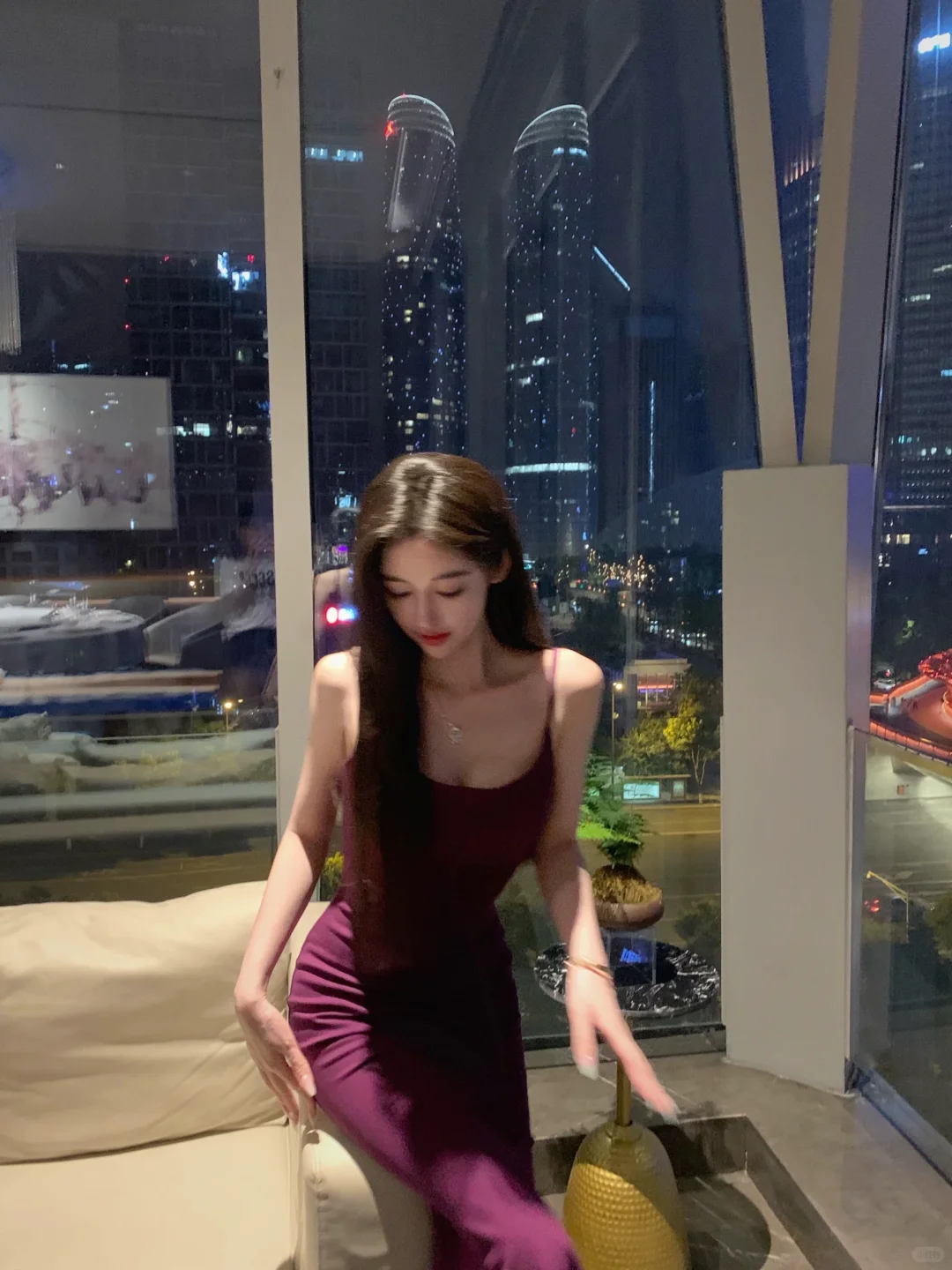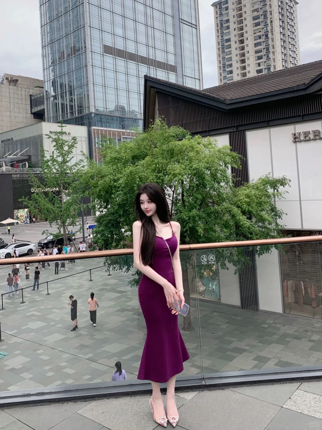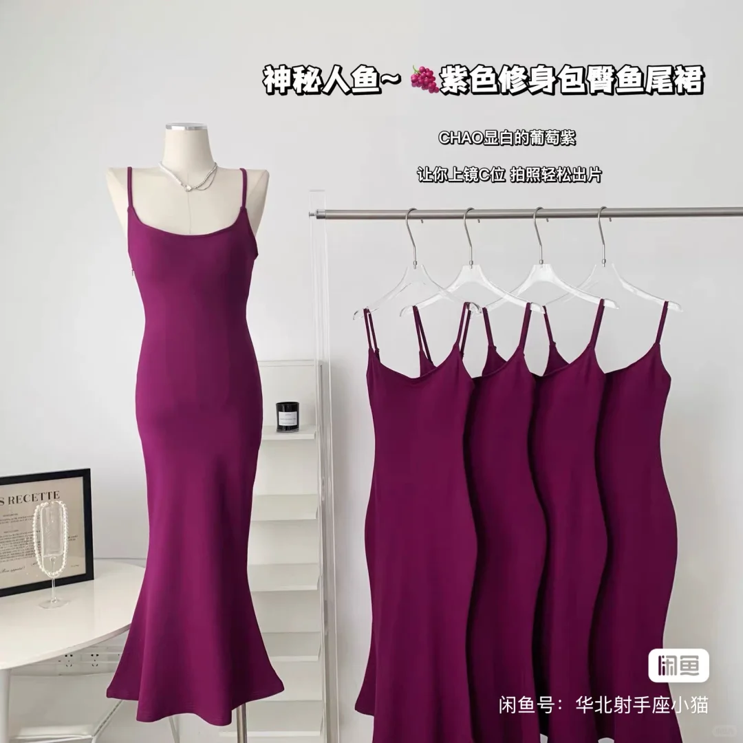 CHU小初 神秘人鱼~巨显白紫色吊带裙高级感