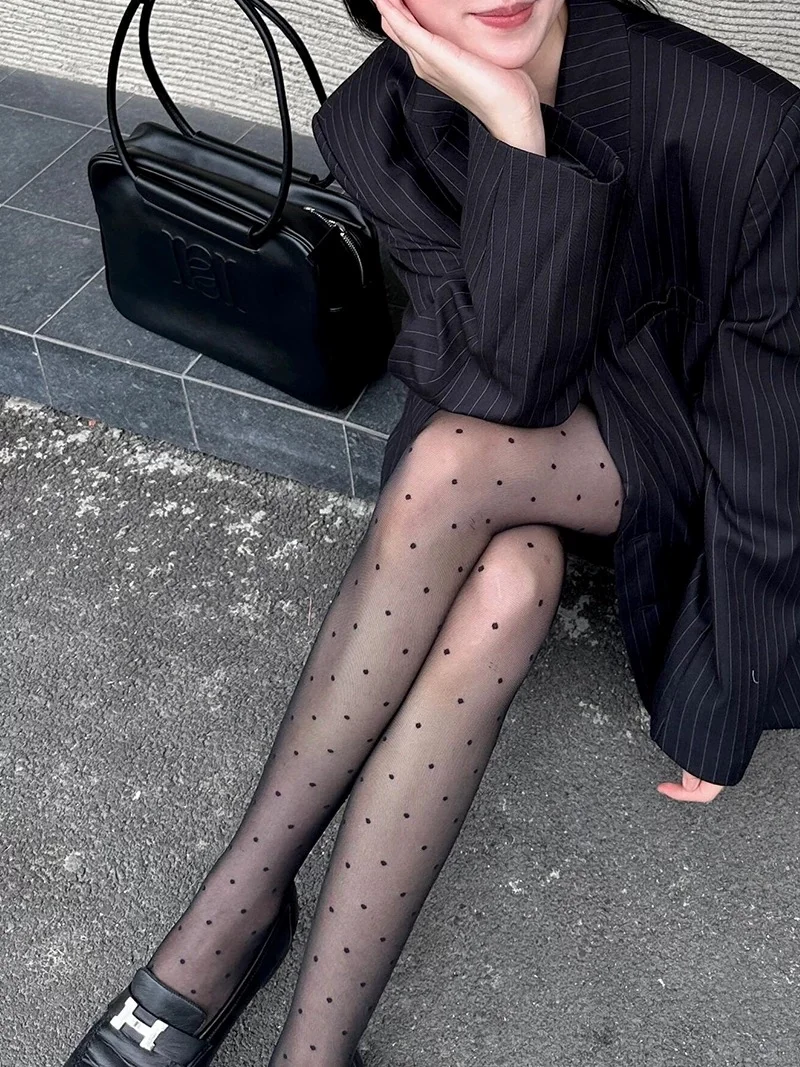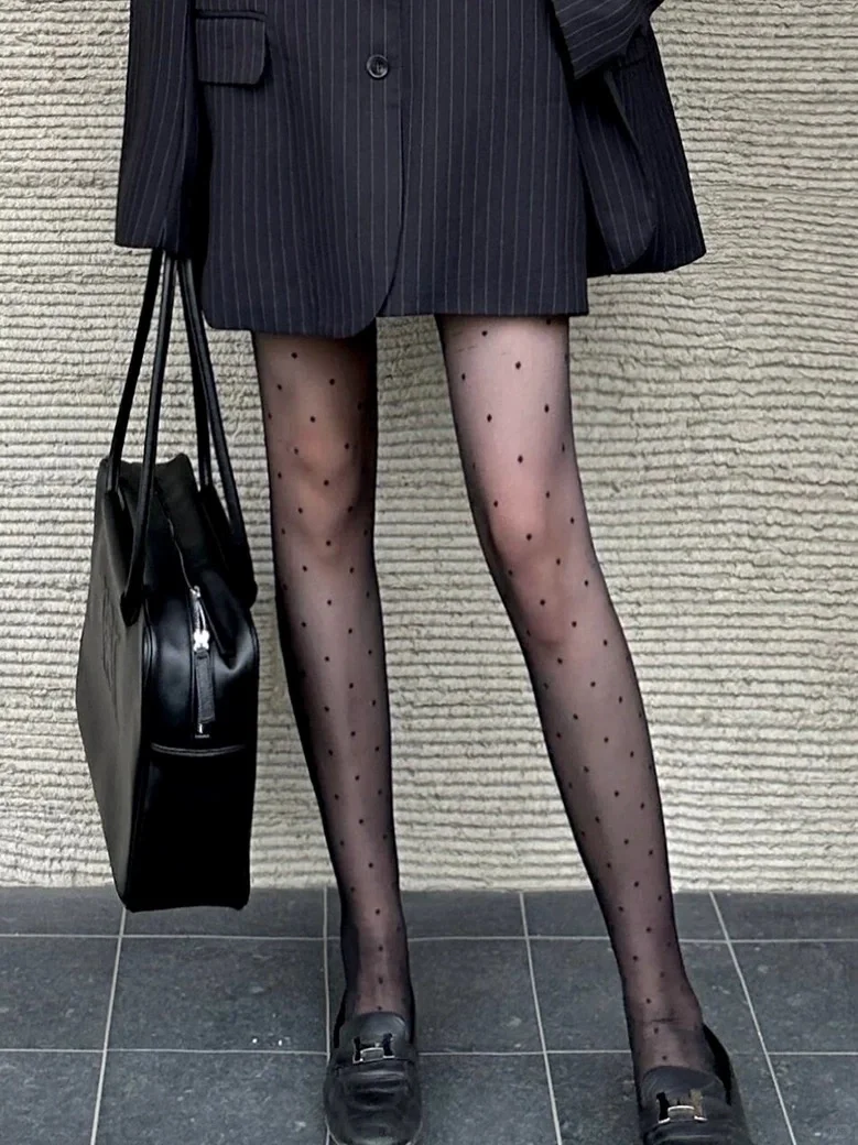 谁懂啊~波点袜和西装也太配了吧~!幂式穿搭