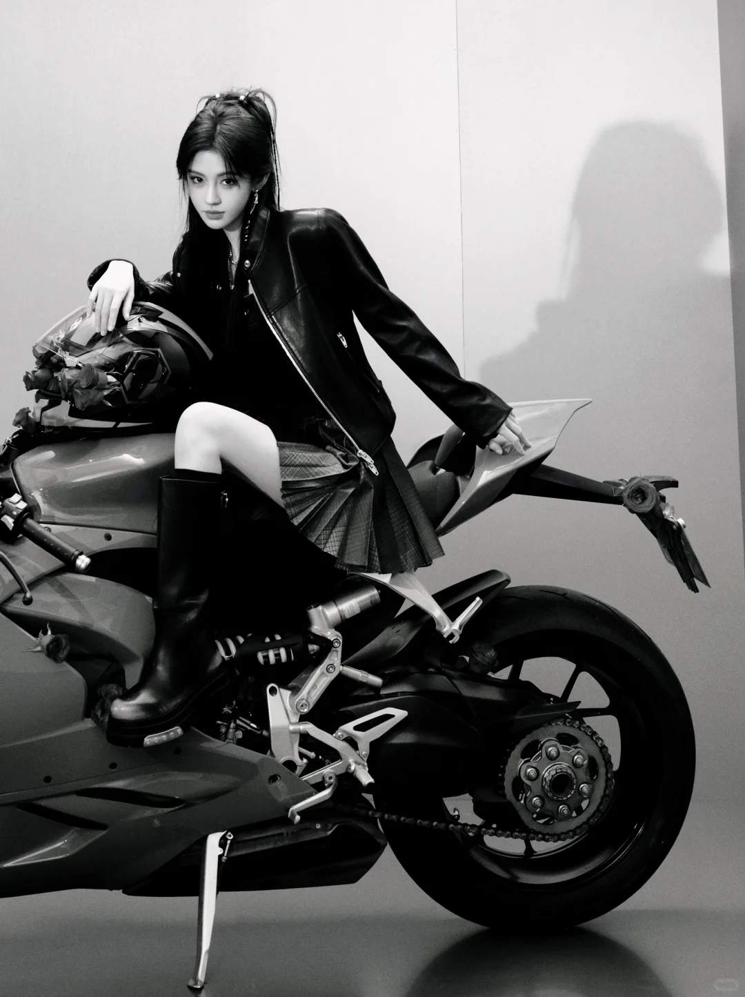 在昨日鞠婧祎亮相的MAC品牌直播活动造型大片中,她大胆突破往日风格,身着Diesel皮夹克搭配利落短裙,宛如炫酷帅气的机车女郎,强势登场,令人眼前一亮。