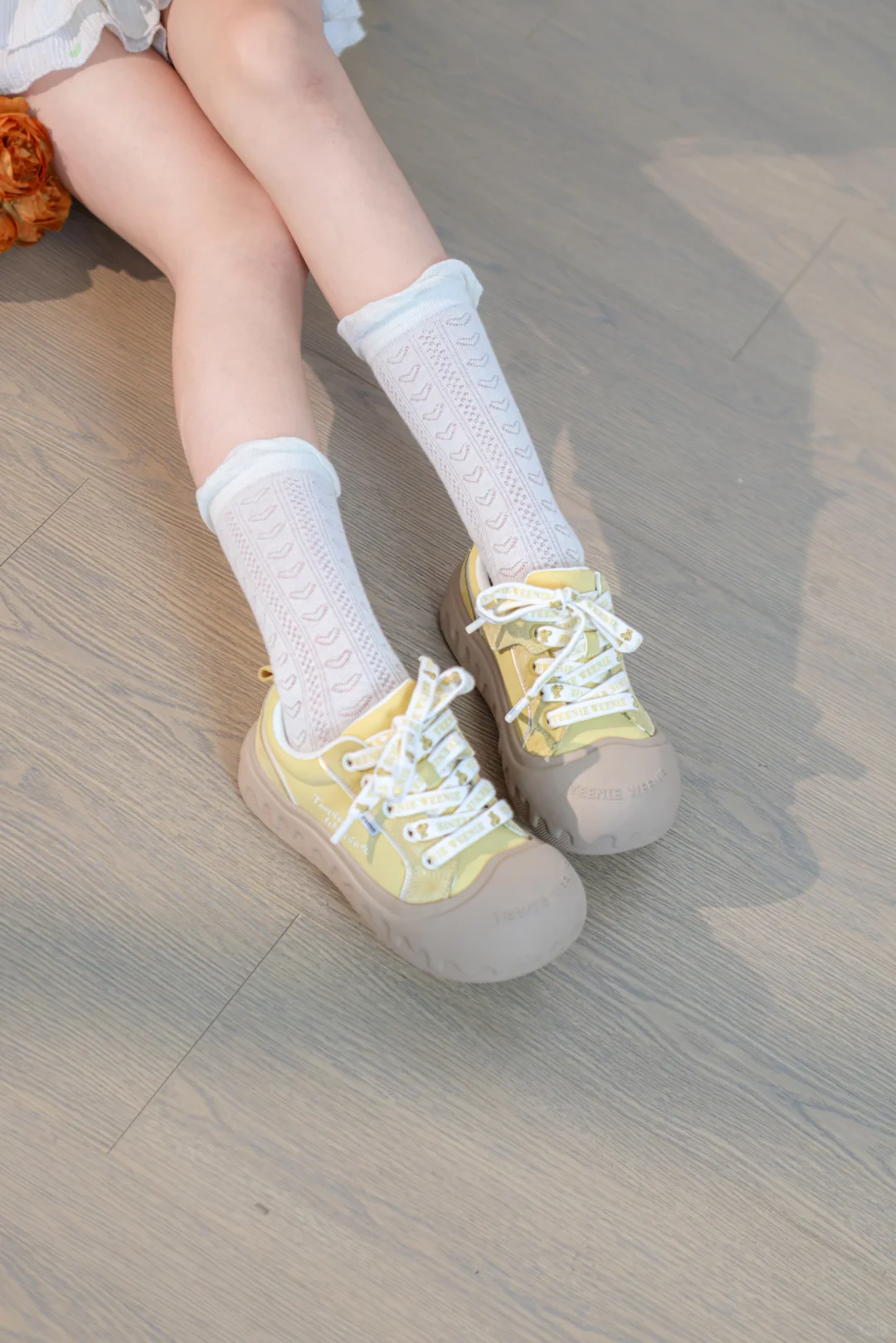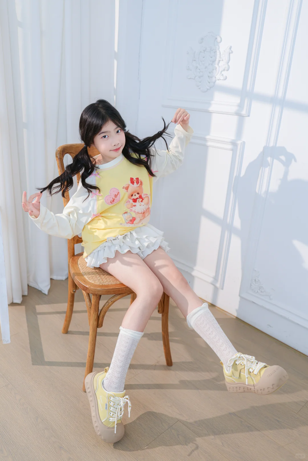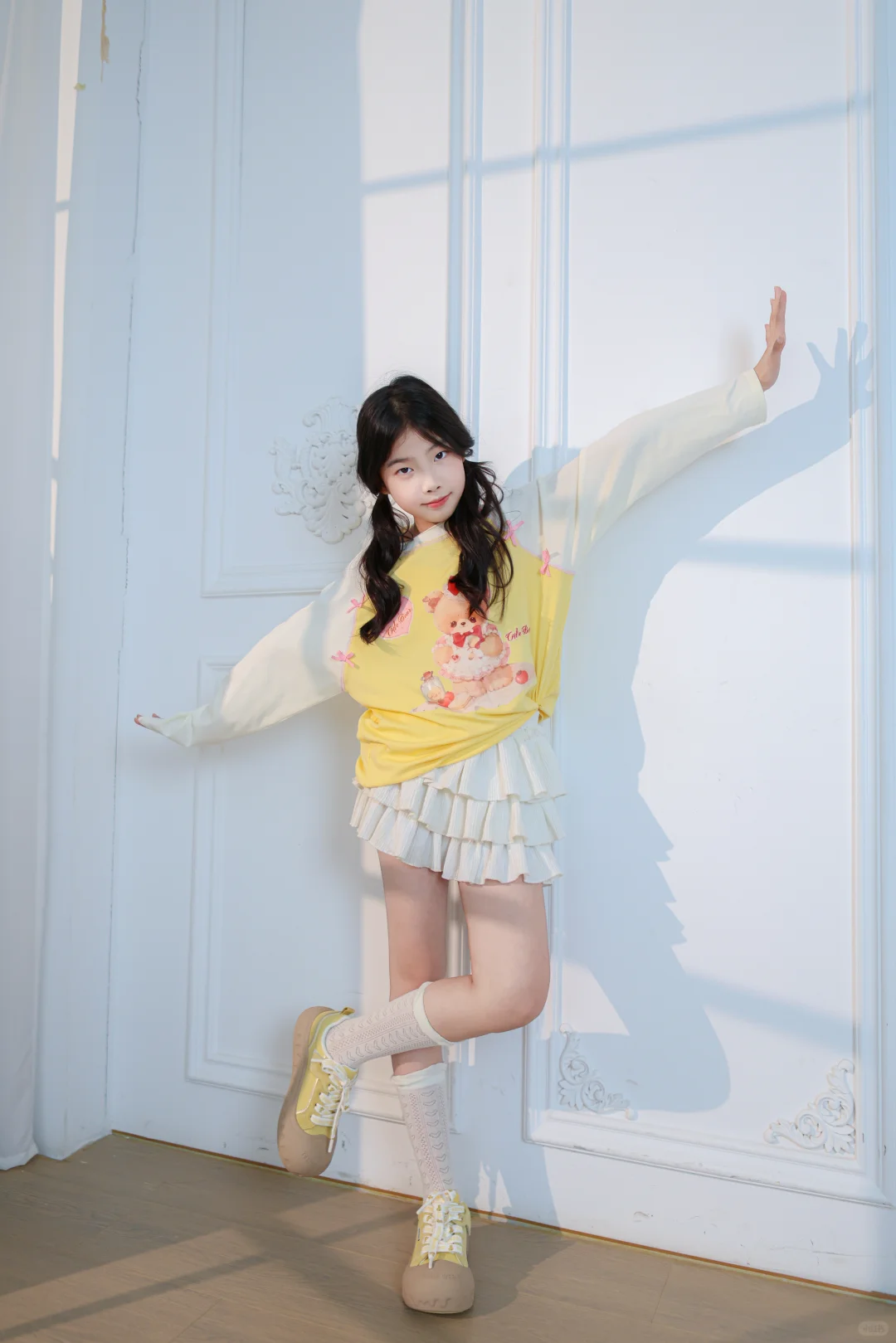 笑笑选的衣服鞋子都是奶呼呼的黄色的