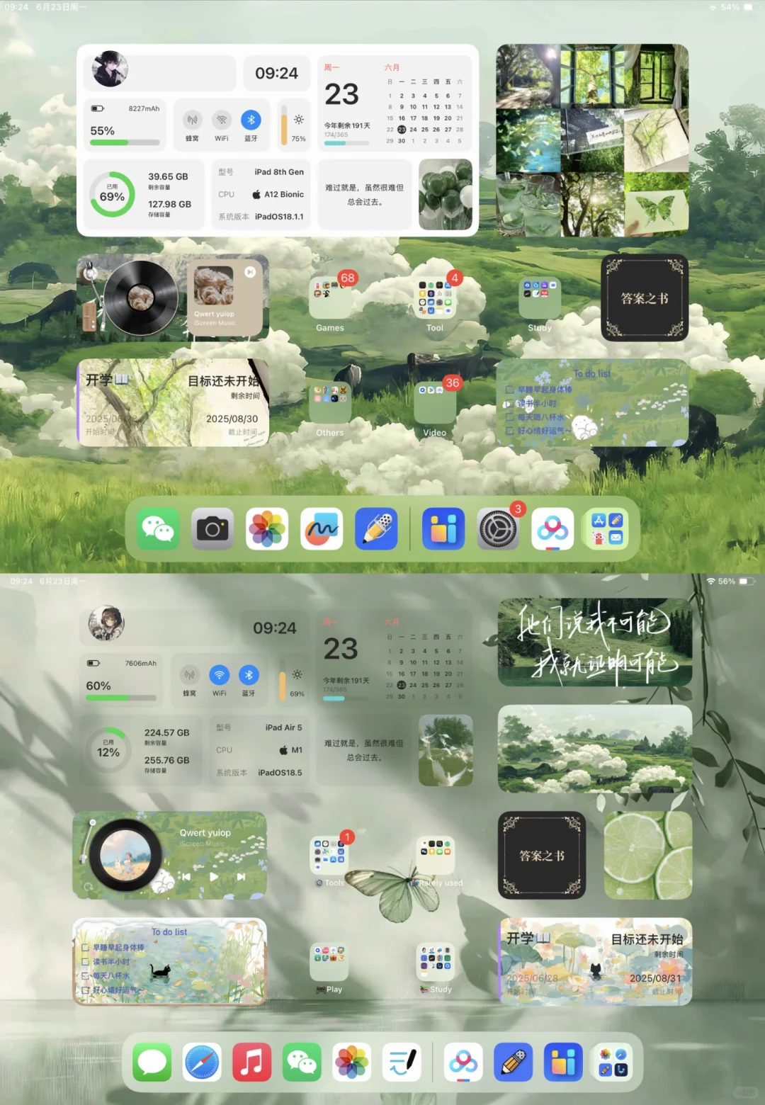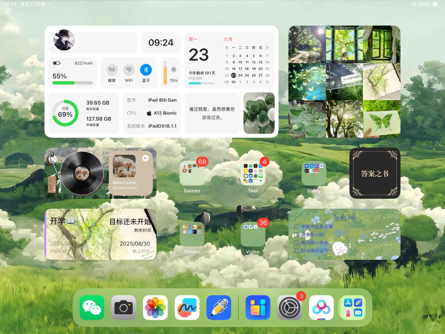 ipad布局,绿色护眼壁纸,教程成功学习到了