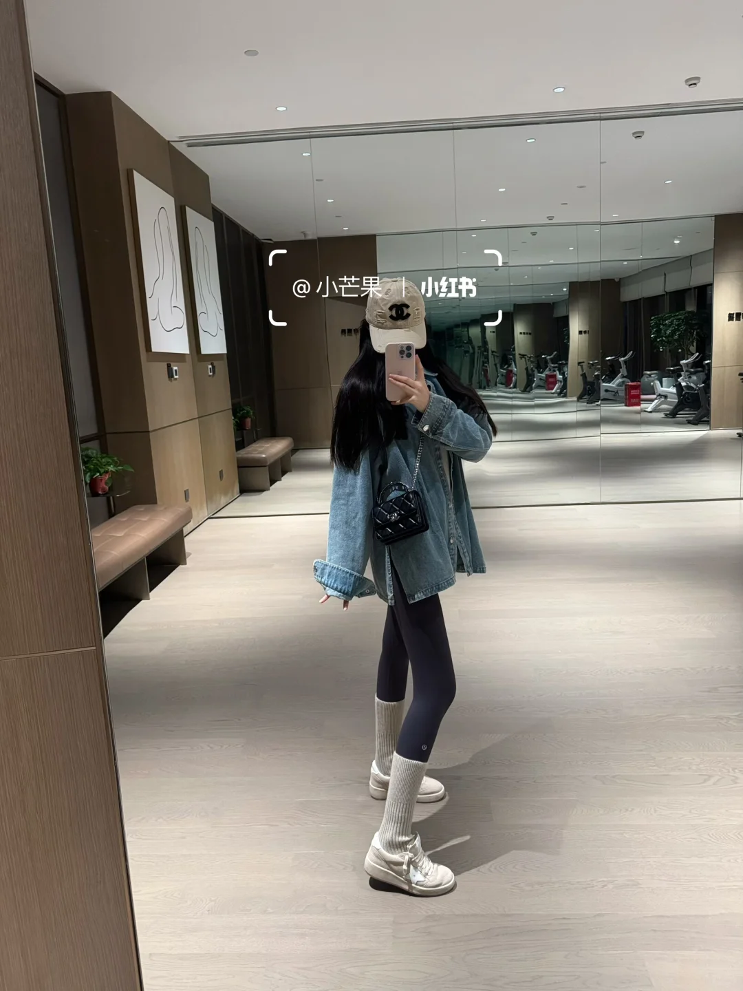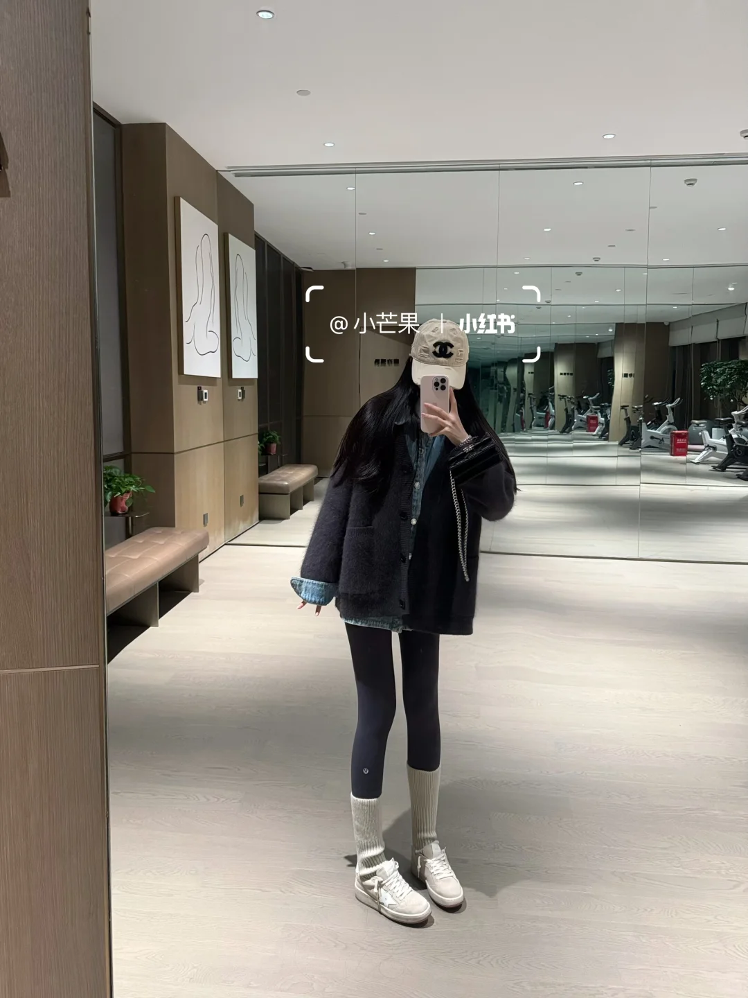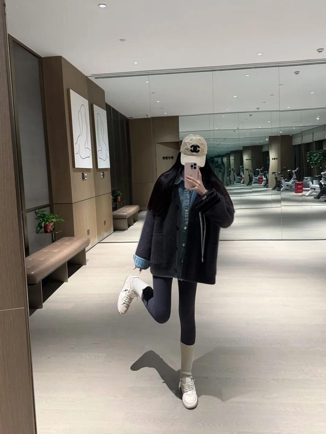 牛仔衬衫➕瑜伽裤➕兔绒毛衣秋冬必备三件套