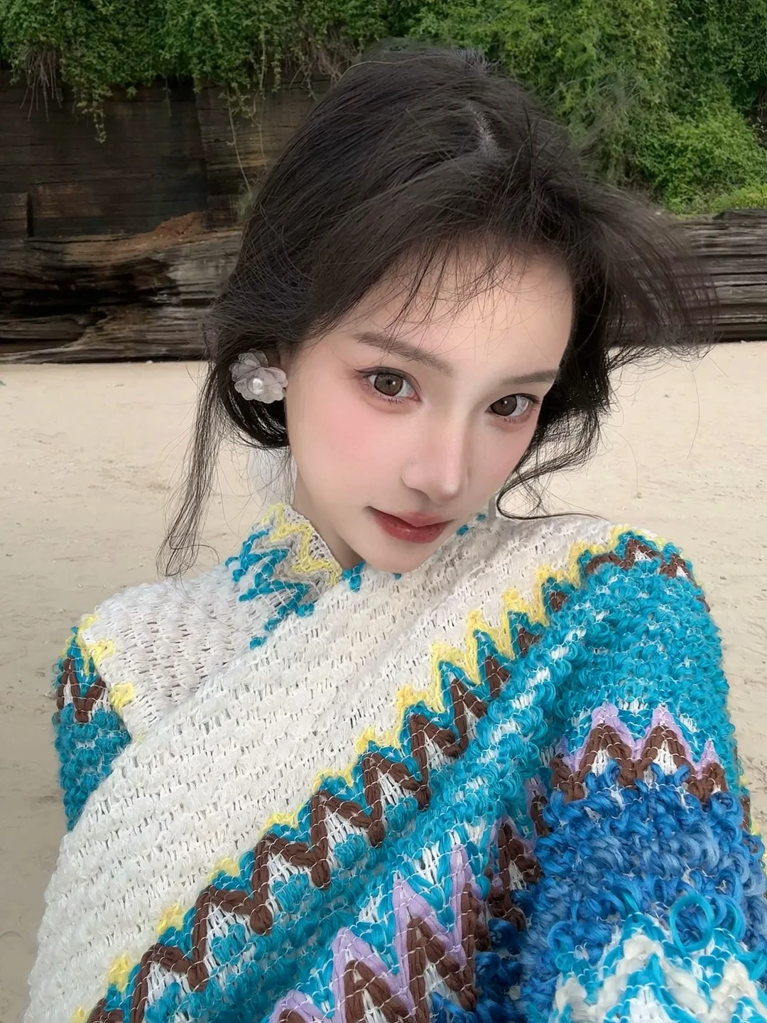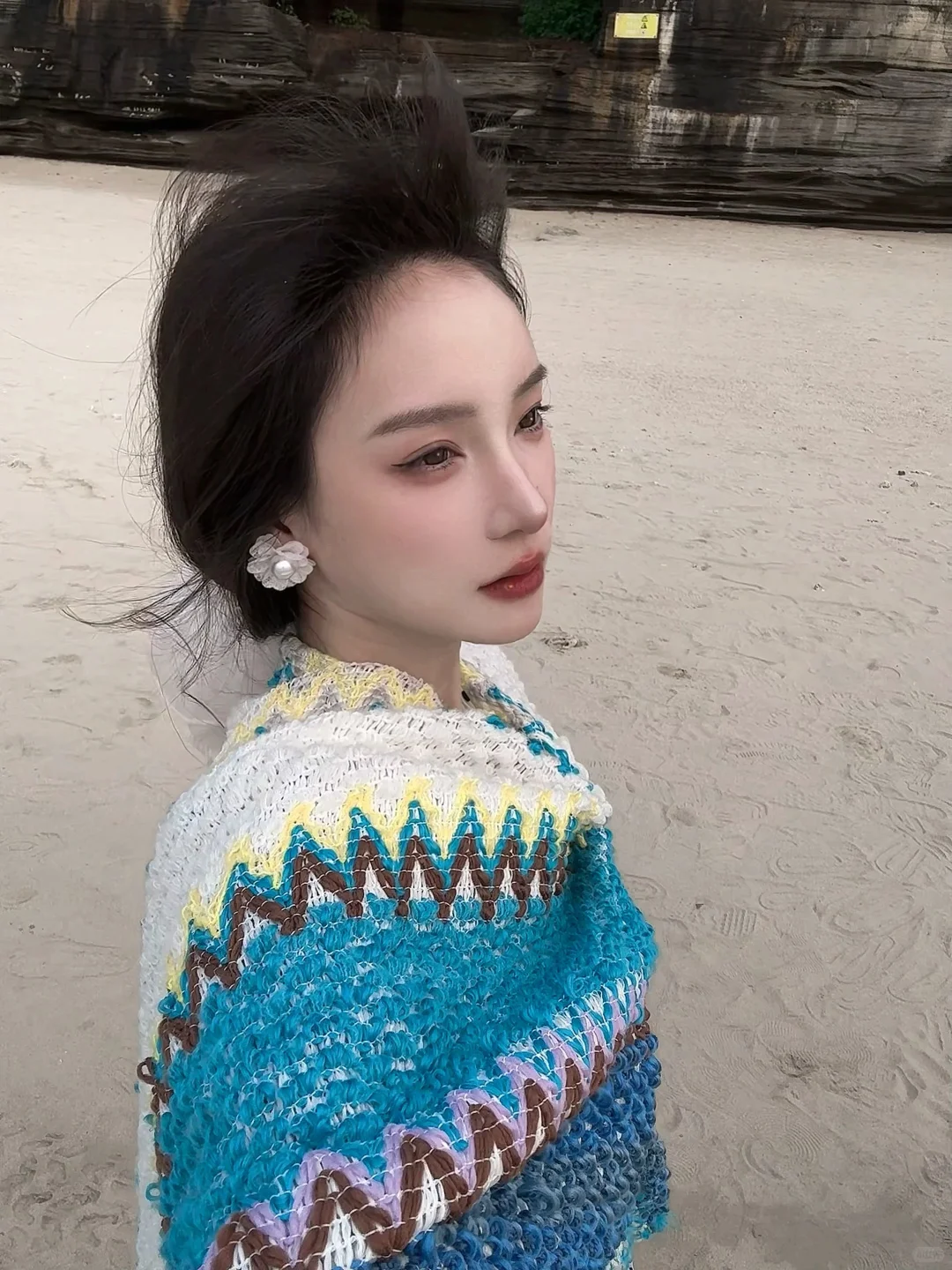 没有标题党,一定要买一件蓝色的衣服或者披肩,真的很出片很显白。我原本带的白裙子反而没有很出片,在小摊上买了件蓝色披肩怎么拍都好看。
