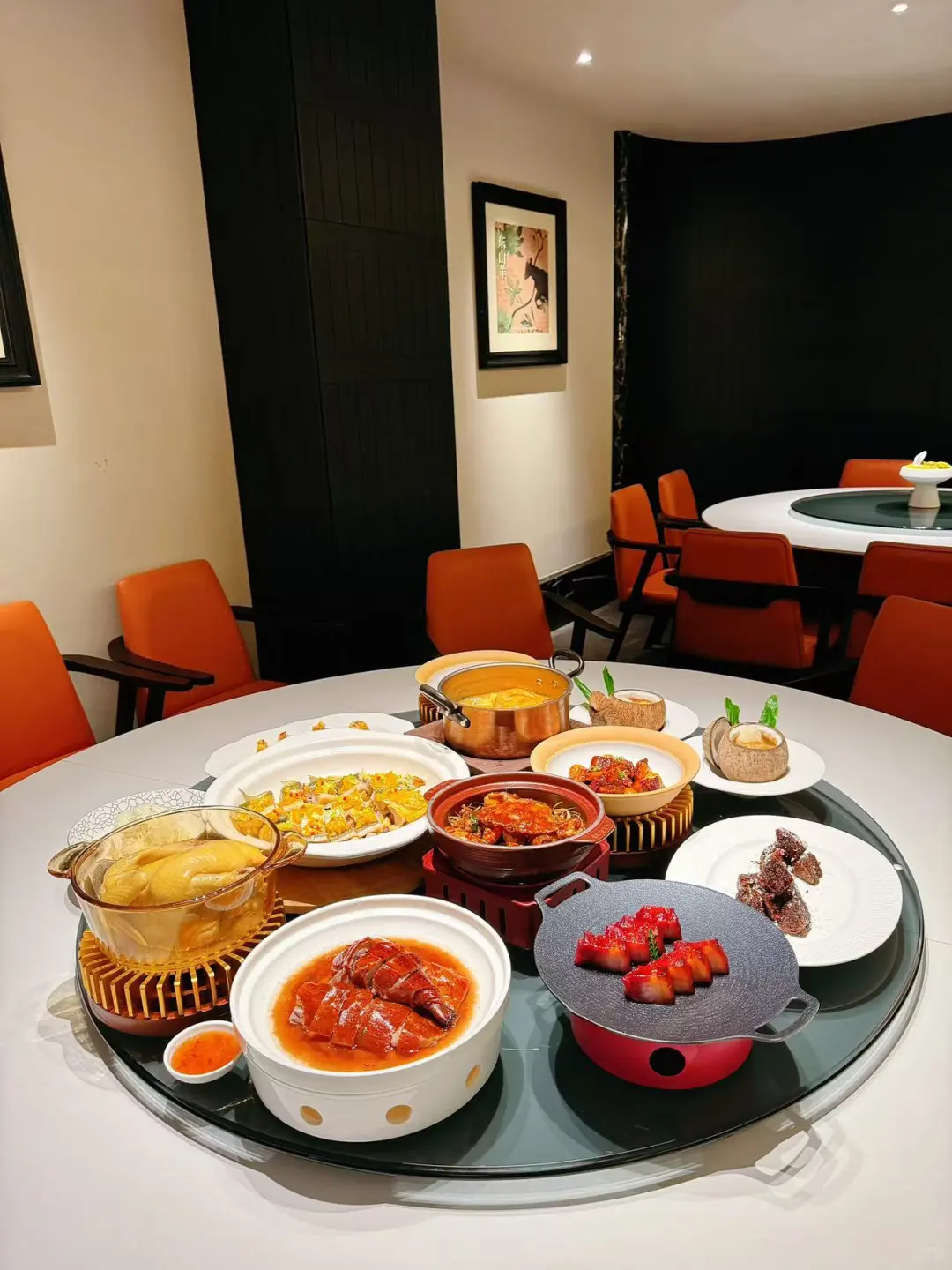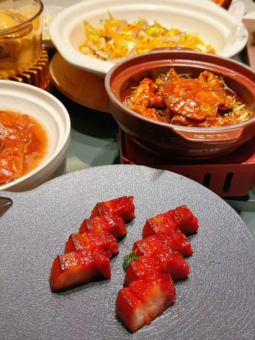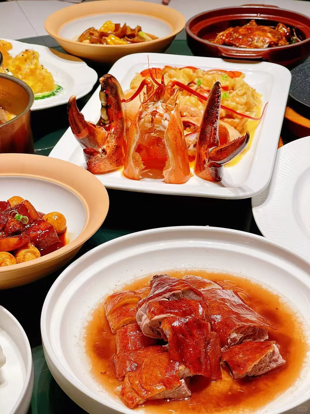 菜品上齐的时候,看着出每道菜都透漏着用心:龙虾肉裹着芝士,入口弹嫩鲜甜;红亮的红烧肉肥瘦相间,用的还是本地黑猪肉,一口下去软糯入味;还有那道皮脆肉嫩的烧鹅,蘸着特调酱汁,不禁感叹,来了那么多天吃的都是什么?