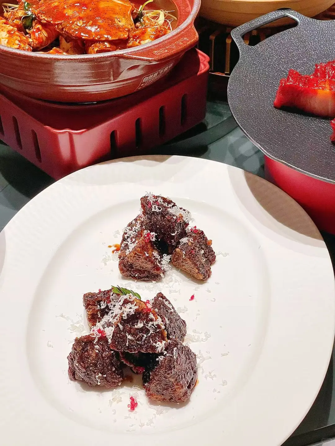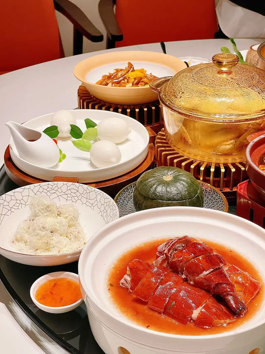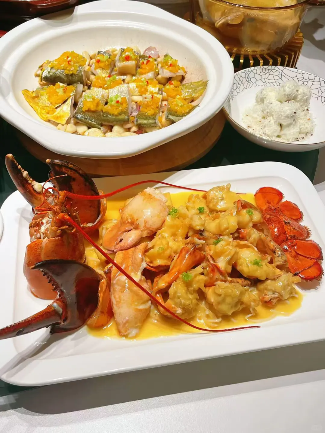 菜品上齐的时候,看着出每道菜都透漏着用心:龙虾肉裹着芝士,入口弹嫩鲜甜;红亮的红烧肉肥瘦相间,用的还是本地黑猪肉,一口下去软糯入味;还有那道皮脆肉嫩的烧鹅,蘸着特调酱汁,不禁感叹,来了那么多天吃的都是什么?