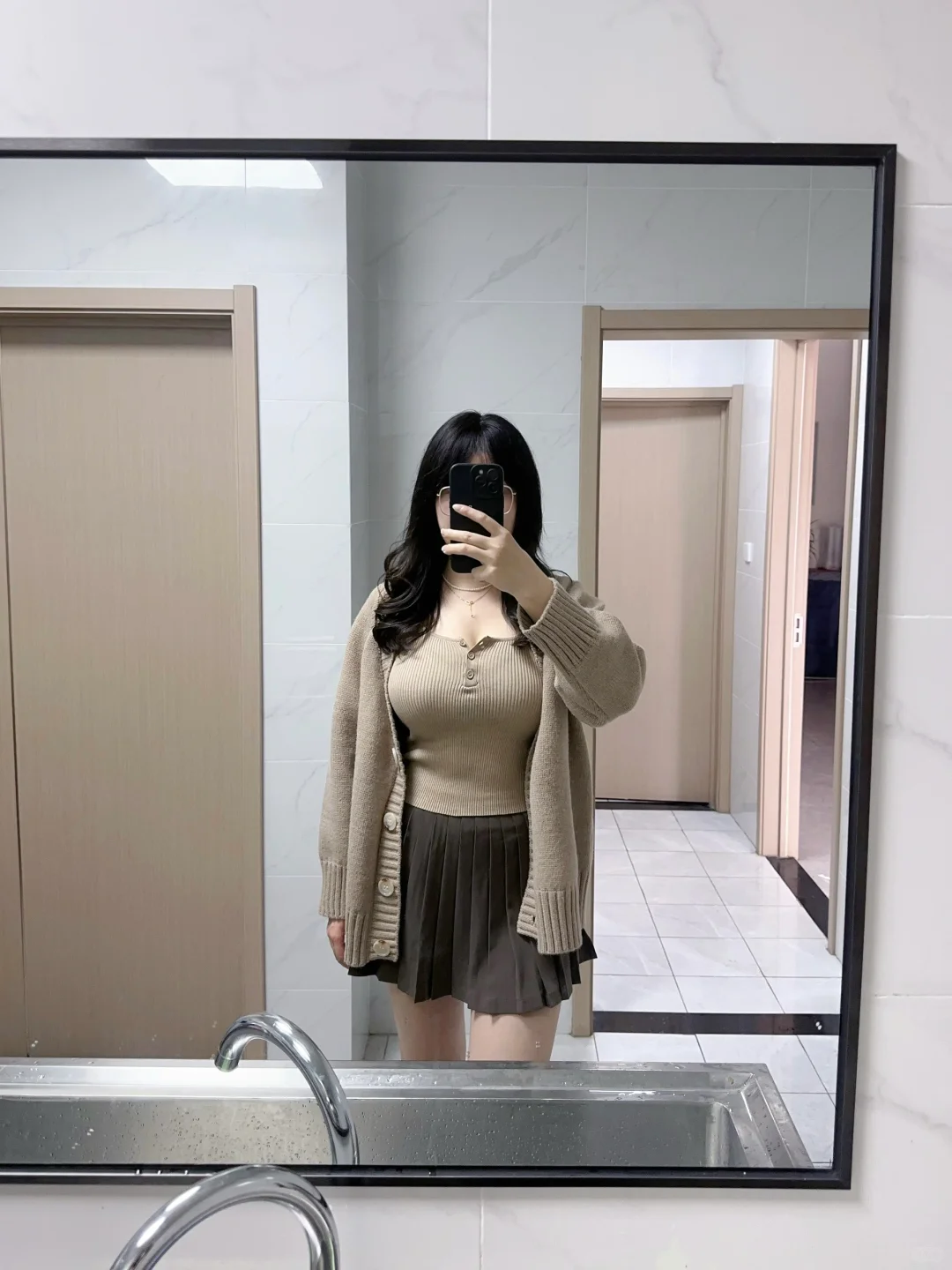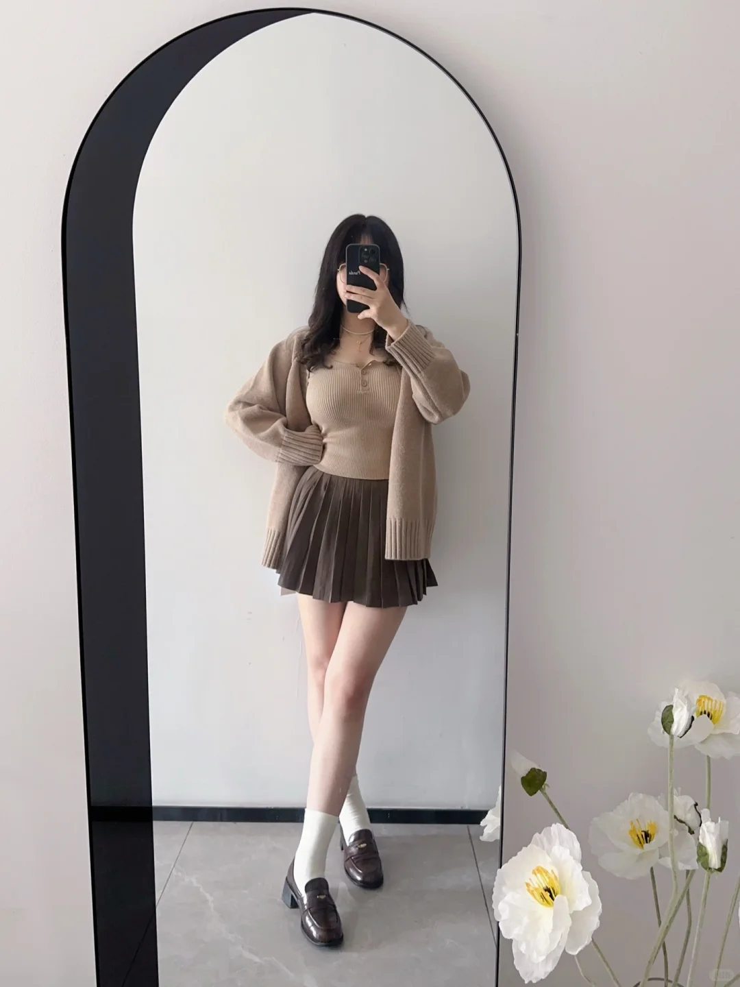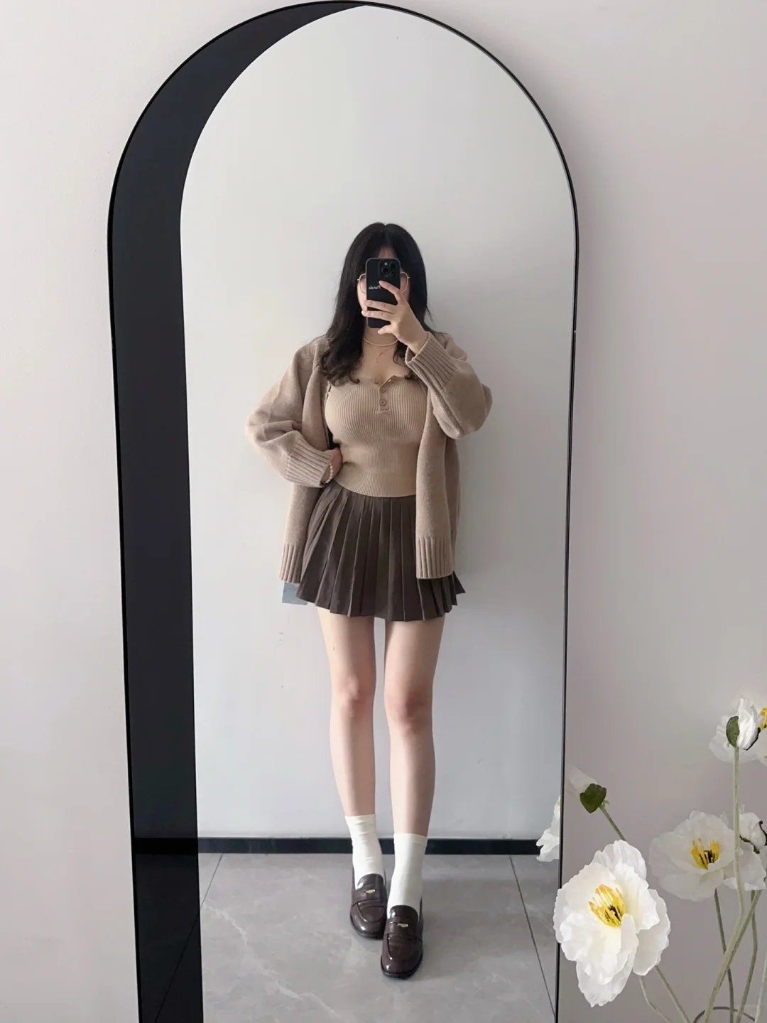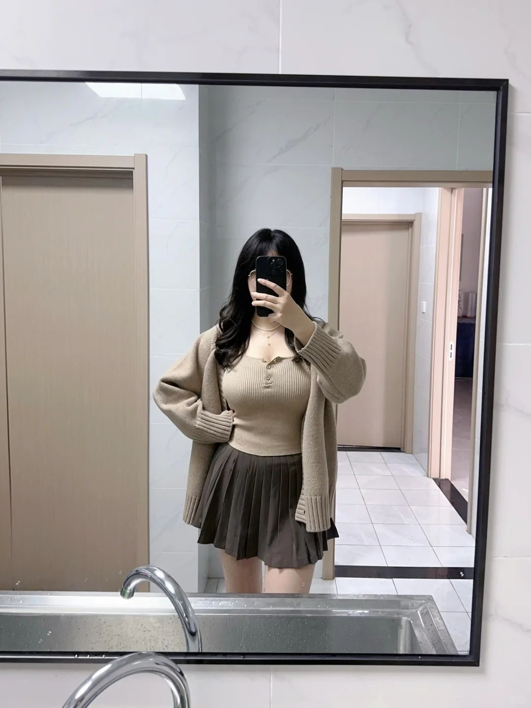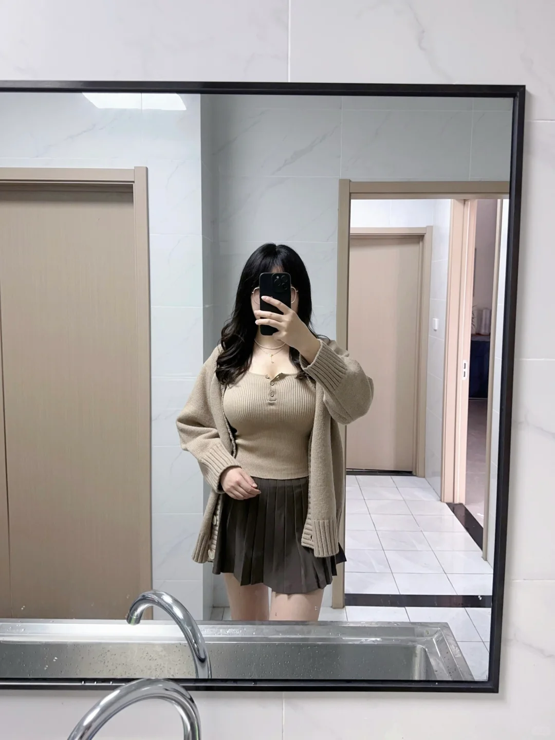 微胖女孩大胆穿!!深秋学院风百褶裙套装🍂