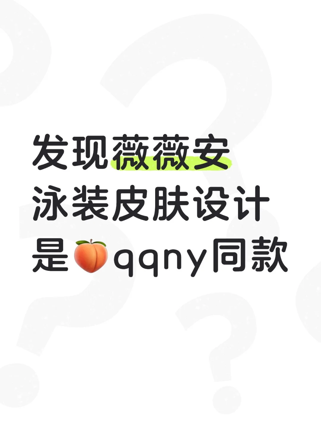 发现薇薇安泳装皮肤设计是🍑qqny同款半夜发出大爆笑,起因是最近在tb刚好看了一些qqny,刚好这件给我留下了比较深刻的印象,本来没太注意新皮肤的设计,今天更新完上了游戏一看发现同款设计才下眉头又上心头………谁懂我笑点