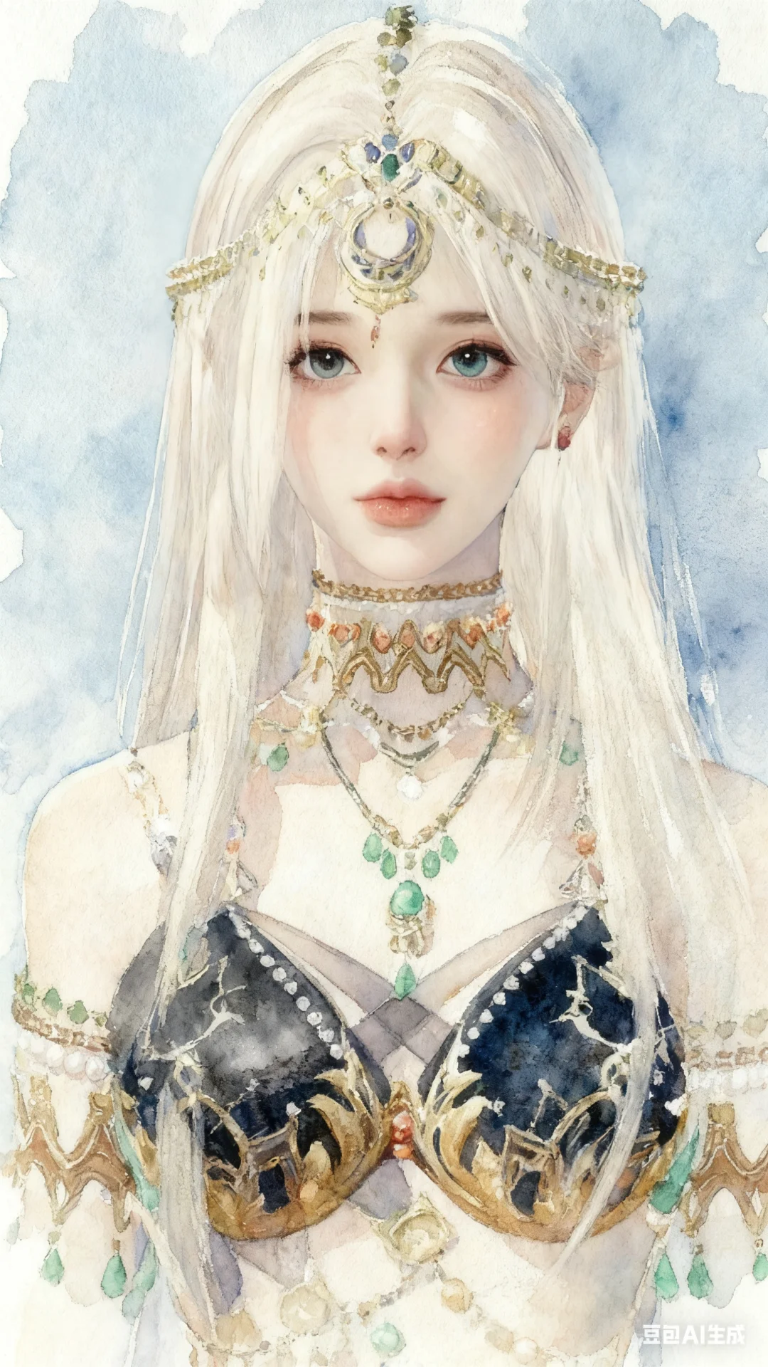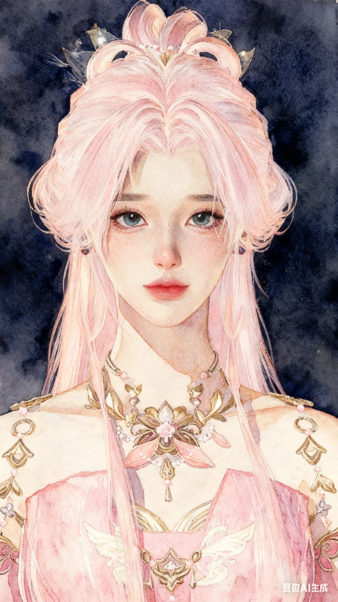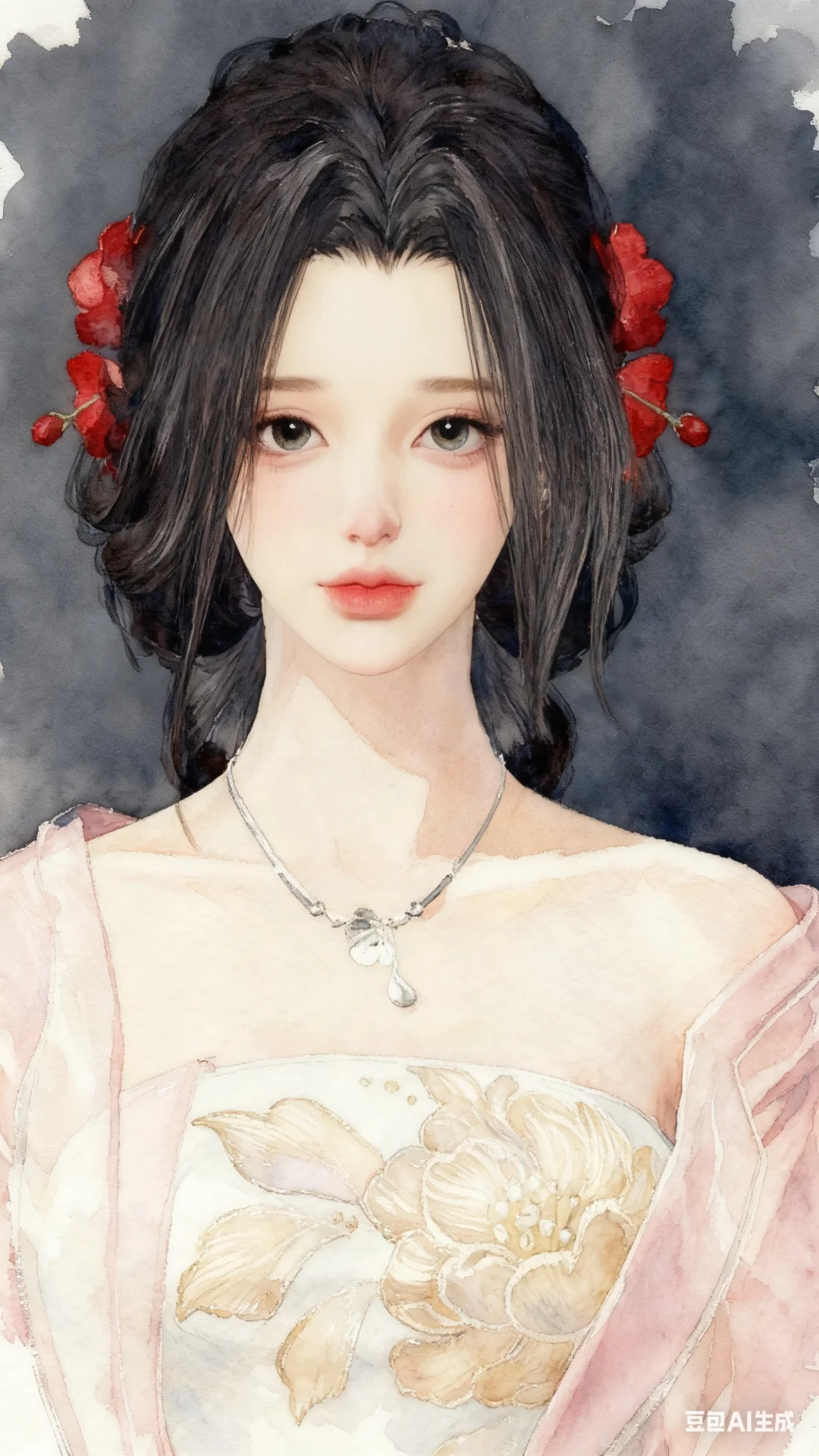 6️⃣➡️8️⃣ 以水彩风格呈现,采用近景头部特写视角,画面素雅唯美,有晕染效果,脸部带有高光,眼睛炯炯有神。使画面充满颗粒感和肌理感。