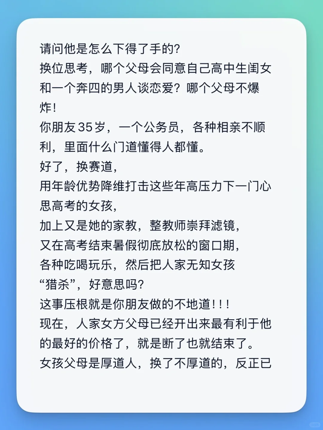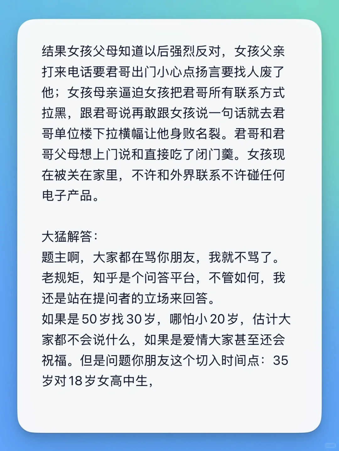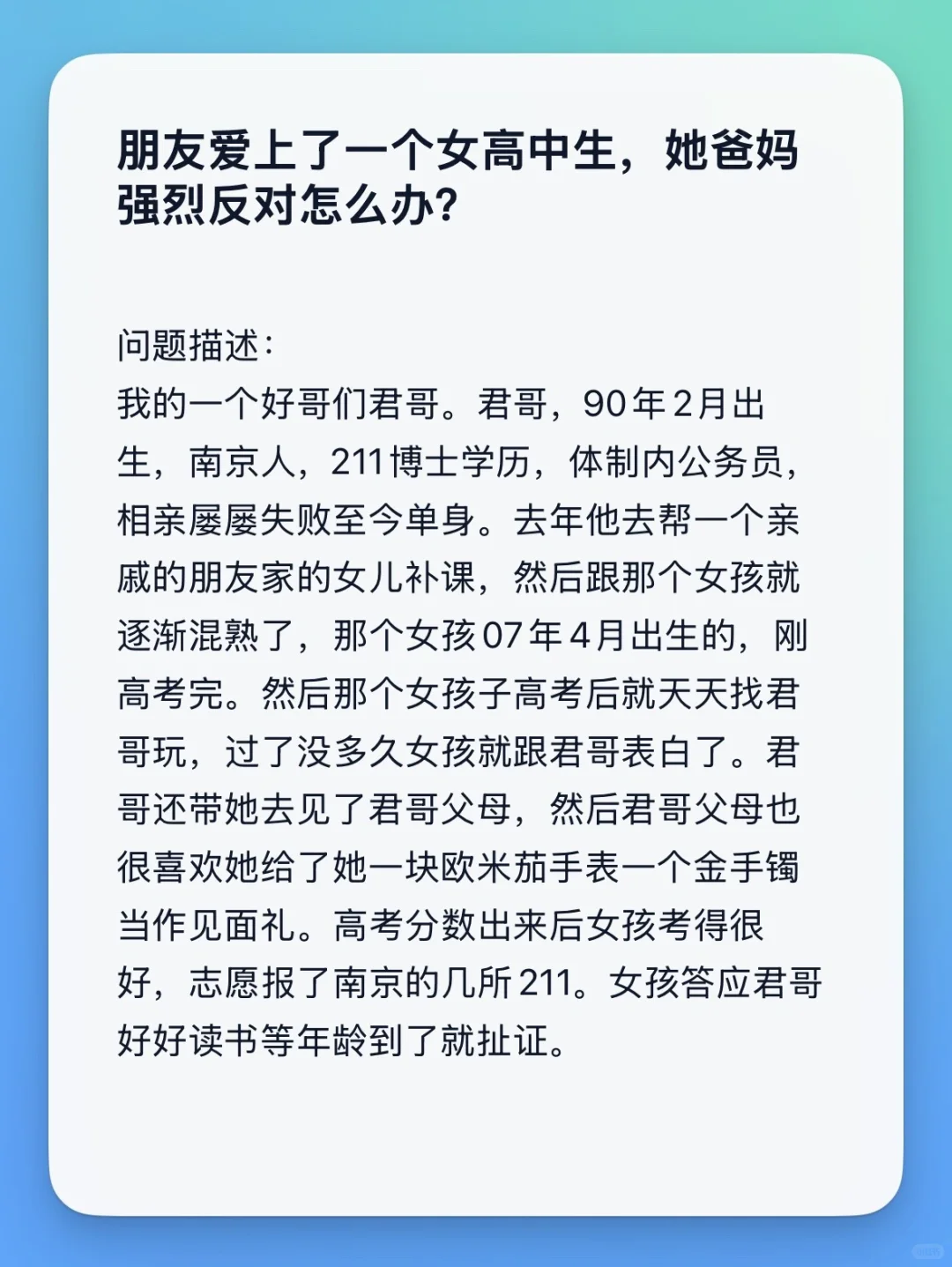 朋友爱上了一个女高中生,她爸妈强烈反对?