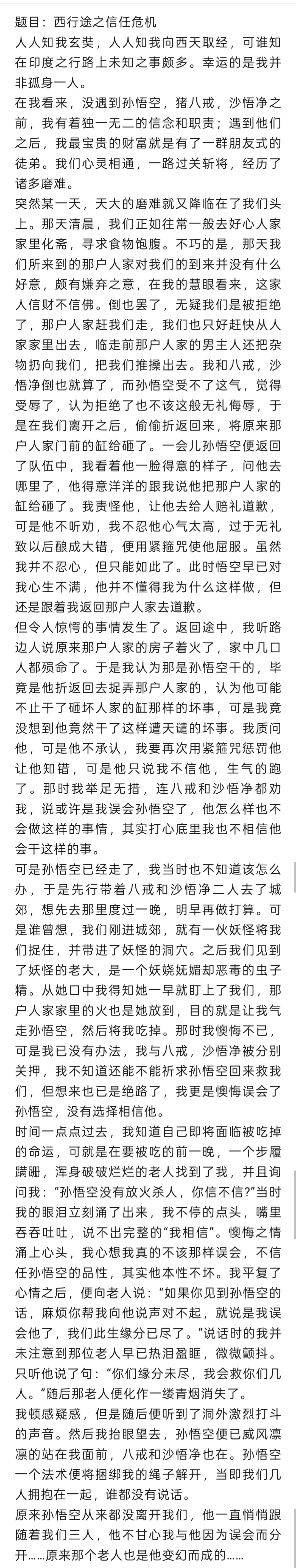 之前英语专业大一的记叙文作业的中文稿子