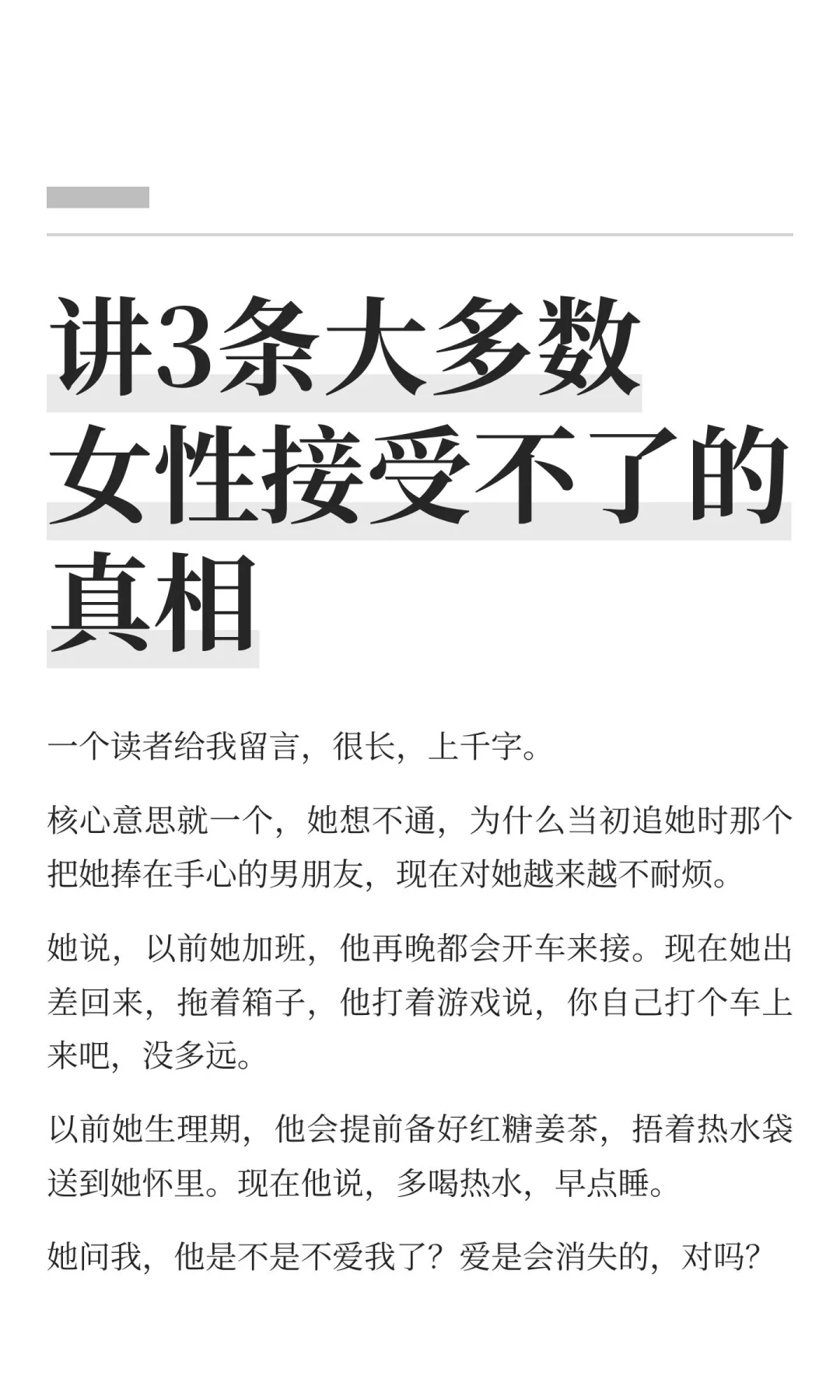 讲3条大多数女性接受不了的真相