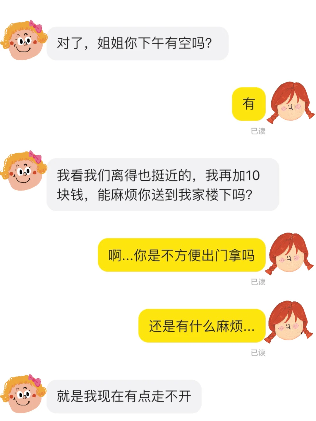 没等我想明白,她又发来消息说加10块钱,问我下午有没有空看地址我们俩离得还挺近的,所以想说能不能送到她家楼下...这话一下让我心里的警报响了起来,一个女高中生、急着买孕期维生素、还主动加钱让我送到她家楼下...我越想越不对劲,联想到之前看过的新闻,我甚至开始担心是不是她遇到了什么麻烦,犹豫半天,我甚至都点准备bj了,就怕她遇到了没法明说的难处。