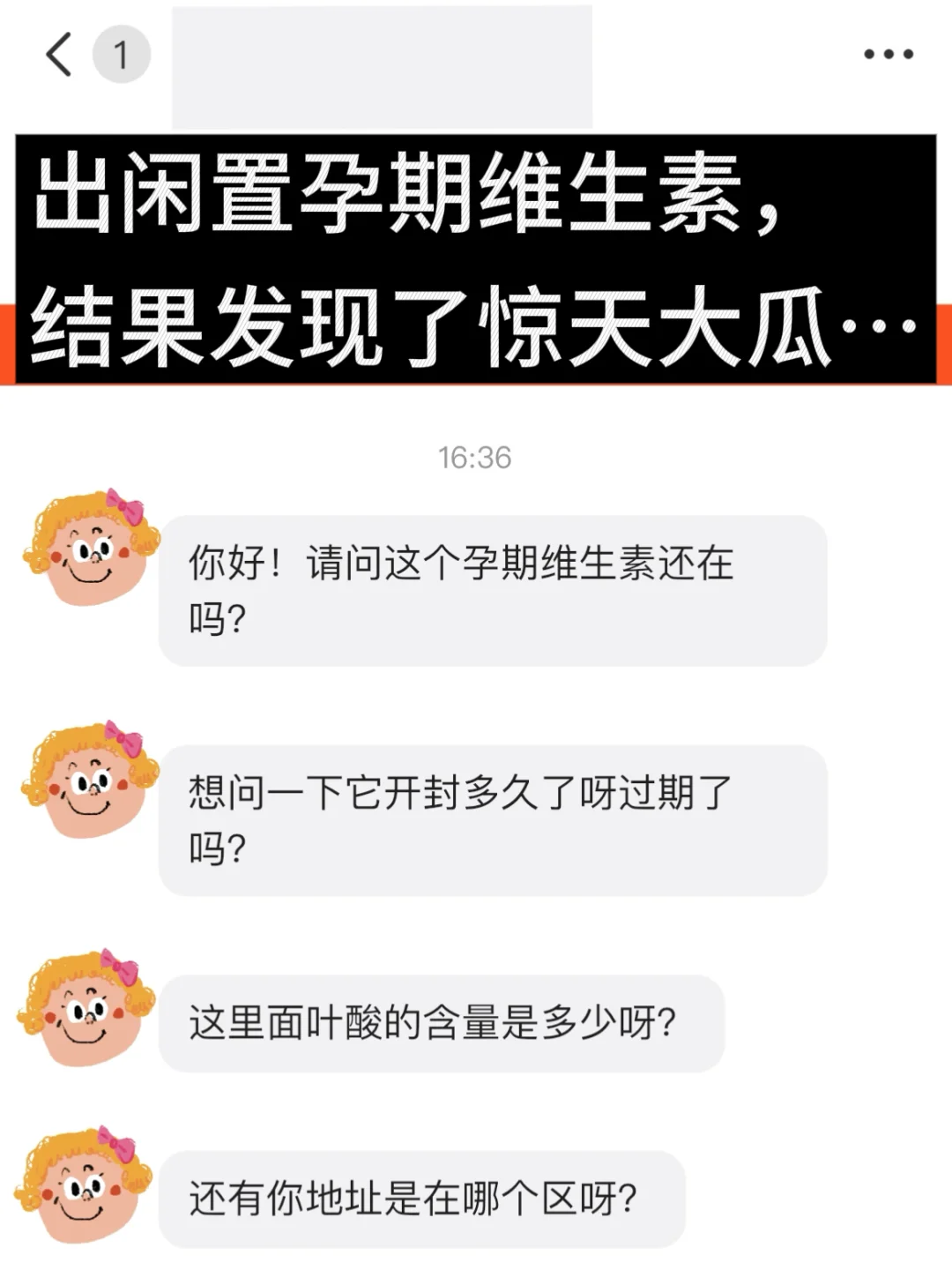 刚上架不到十分钟,就有人连着发来三条消息问我这个维生素开封多久了,过期了吗?里面的叶酸含量高不高?还有我的地址在哪。