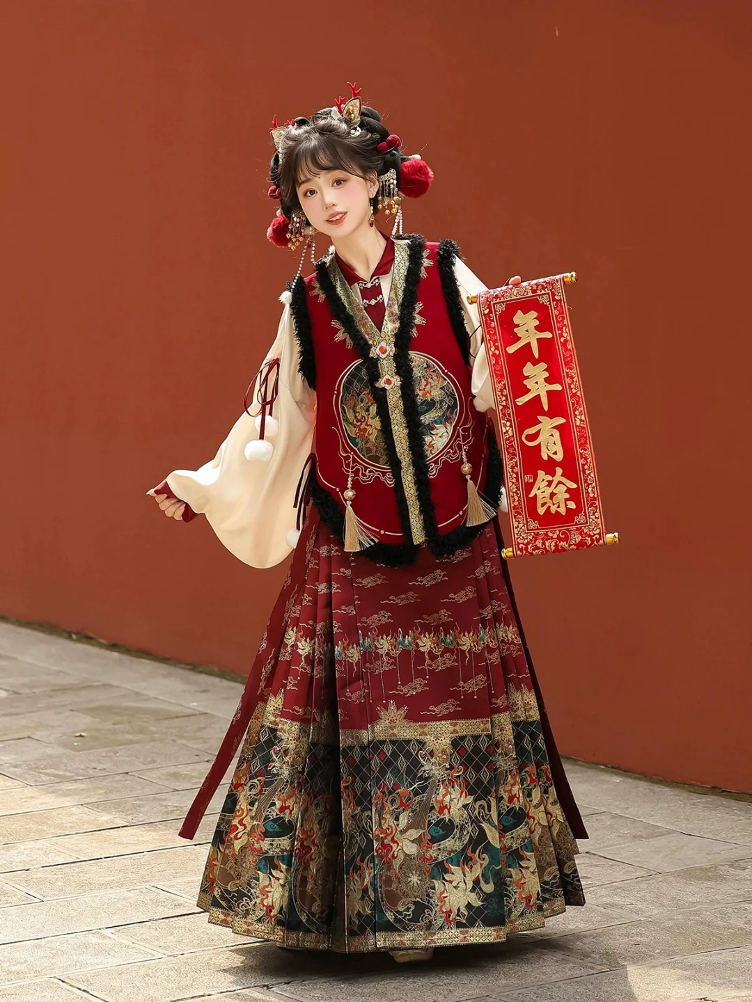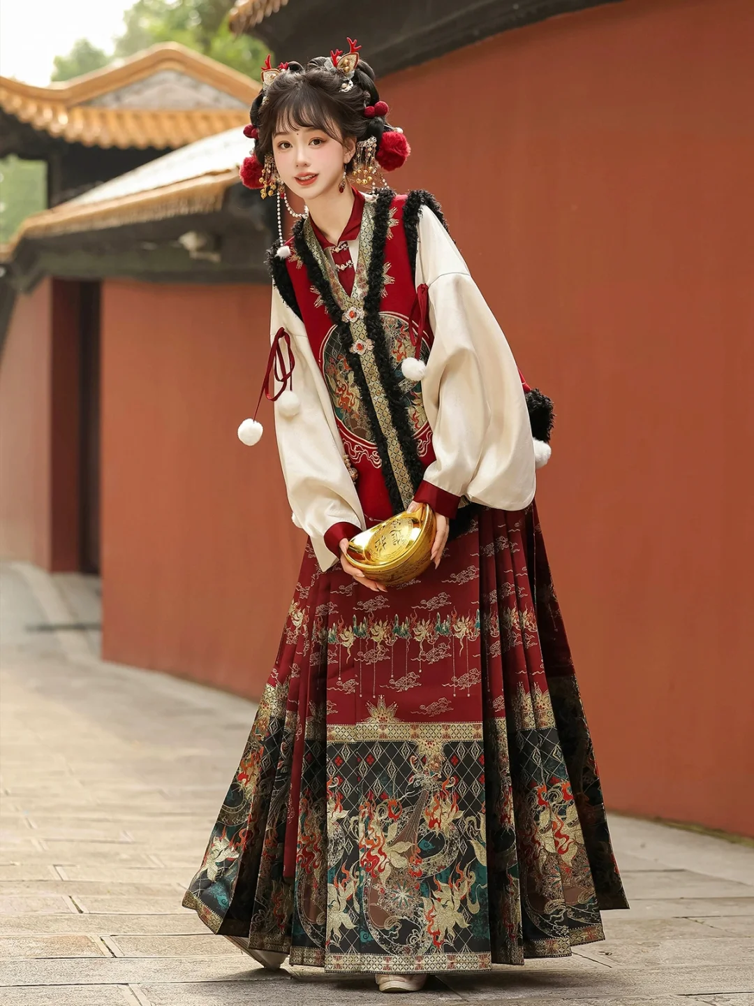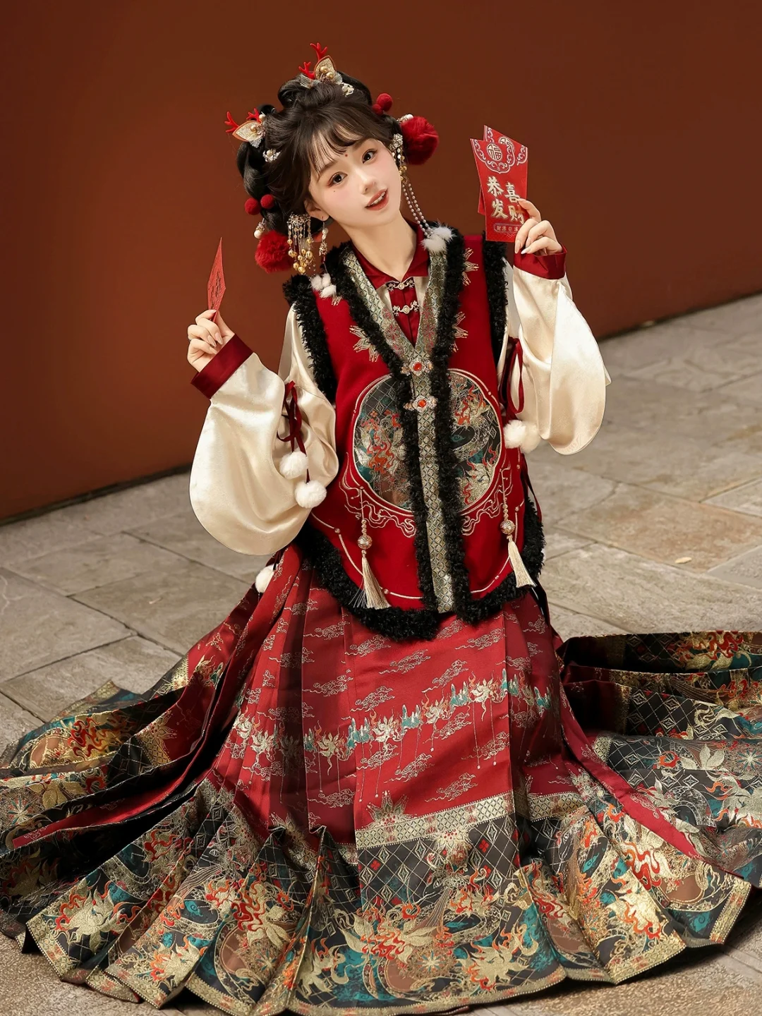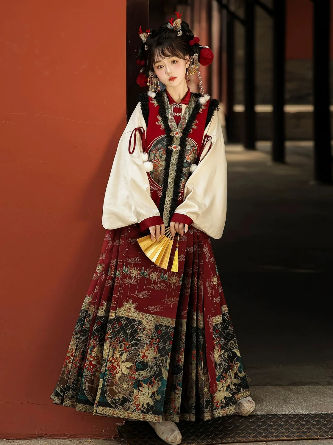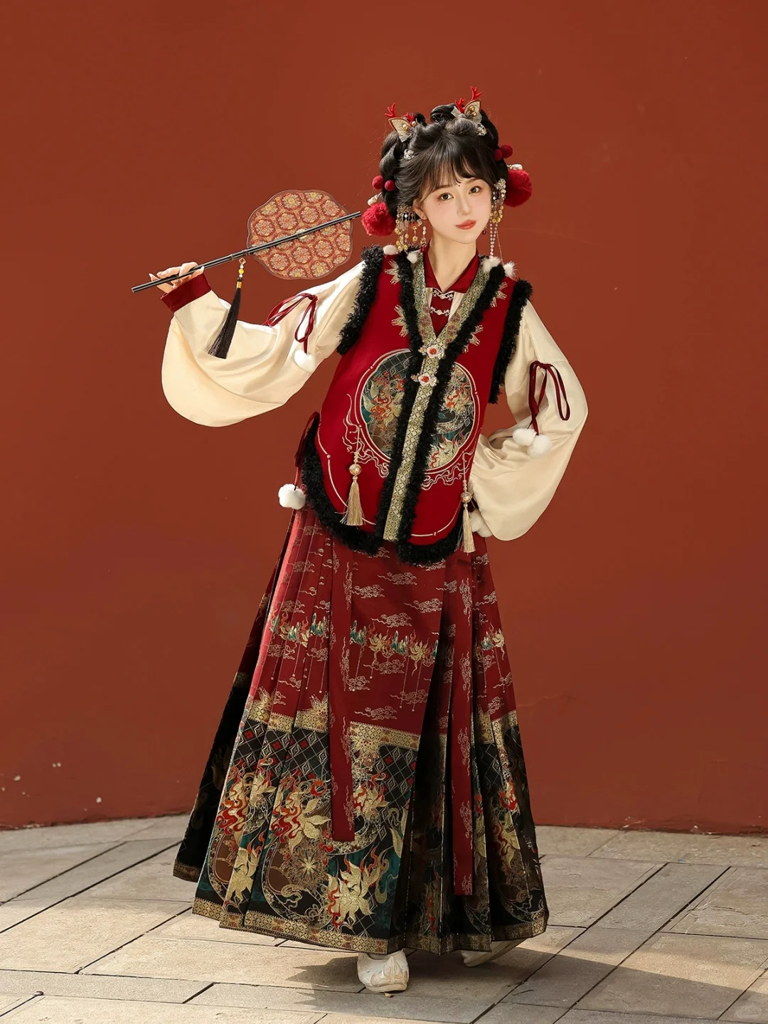 马甲+马面裙+上衣三件套,