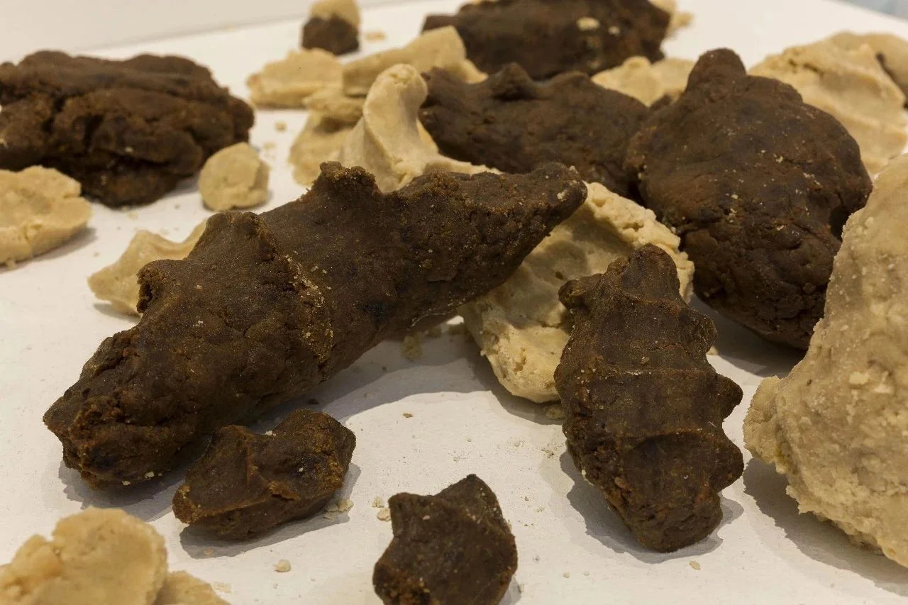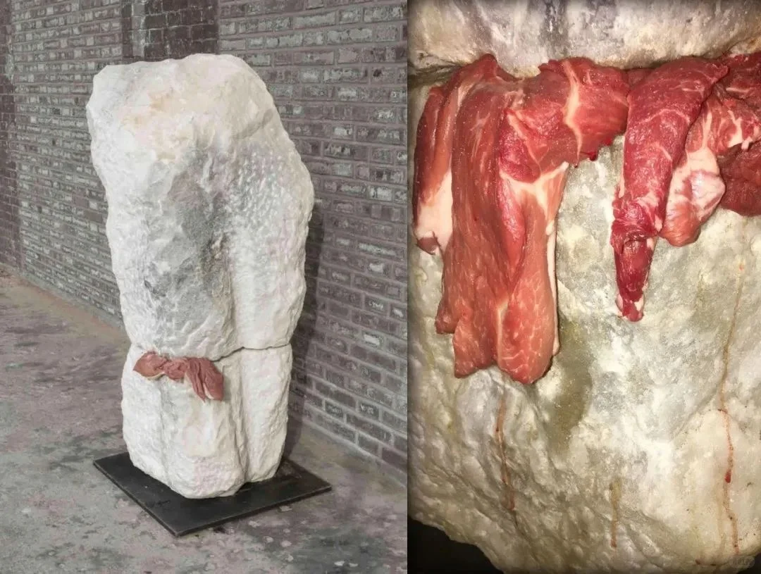 母乳在艺术界中是一种非常规物质,很少有艺术家在创作中使用它。尽管鲜有其他事物能像母乳般与孕育生命、奉献牺牲的母亲形象产生强烈关联。其作品《艺术家制造》进一步展示了母乳作艺术材料的潜力:她将自己18L母乳制成温热泥状物,双手反复挤压那令她既爱又恨的物质。那是疼痛的记忆,也是母爱的分量,形成一块块留下深深指印——身体与之对抗痕迹的雕塑。该作品也探讨了商品、物品与雕塑的定义,对于什么是艺术品以及什么是可销售的物品提出质疑。