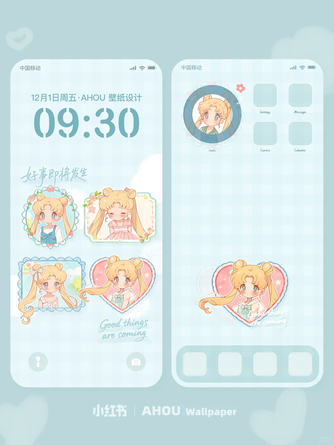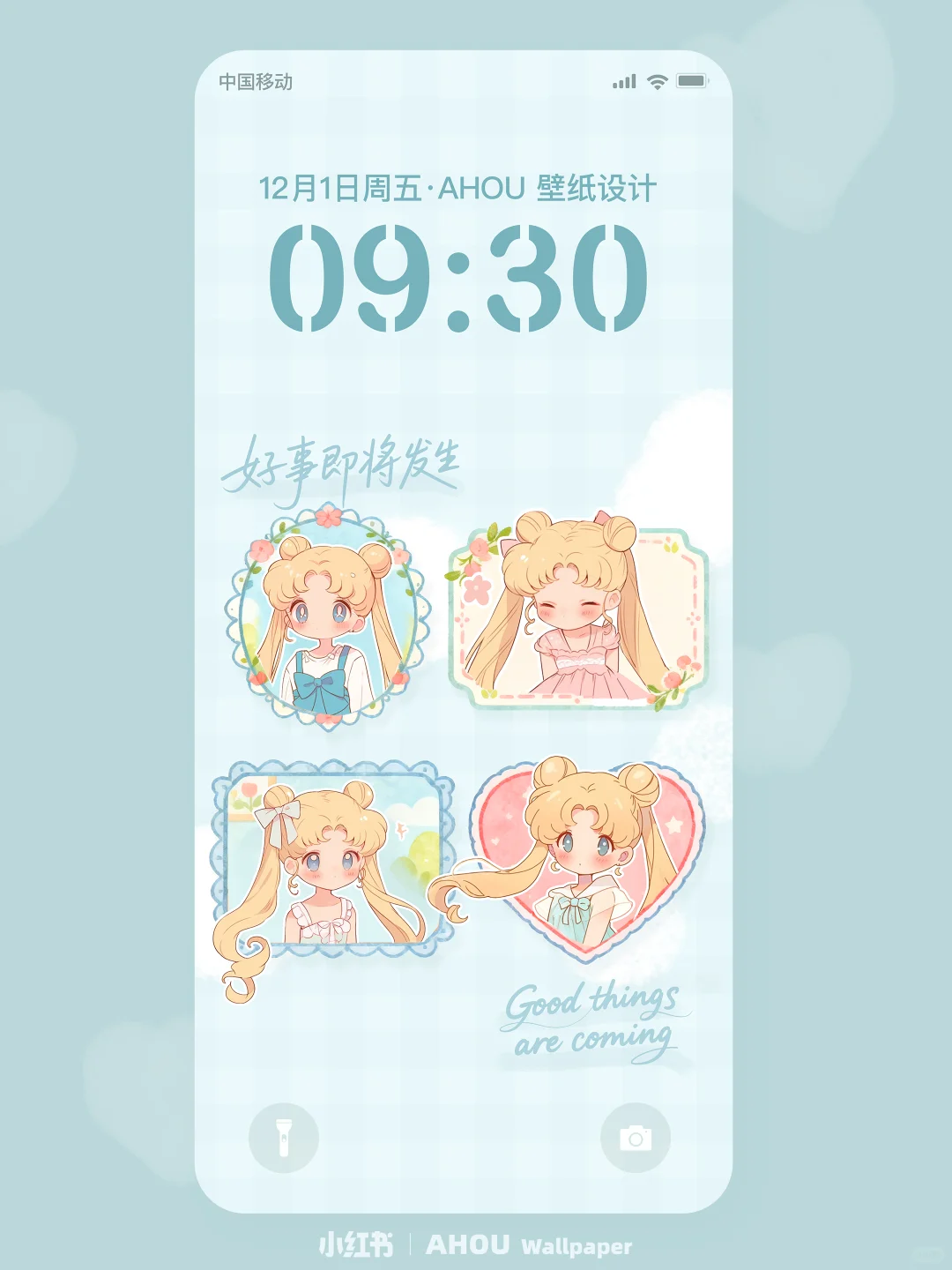 治愈系月野兔四连拍手机壁纸,太可爱了叭