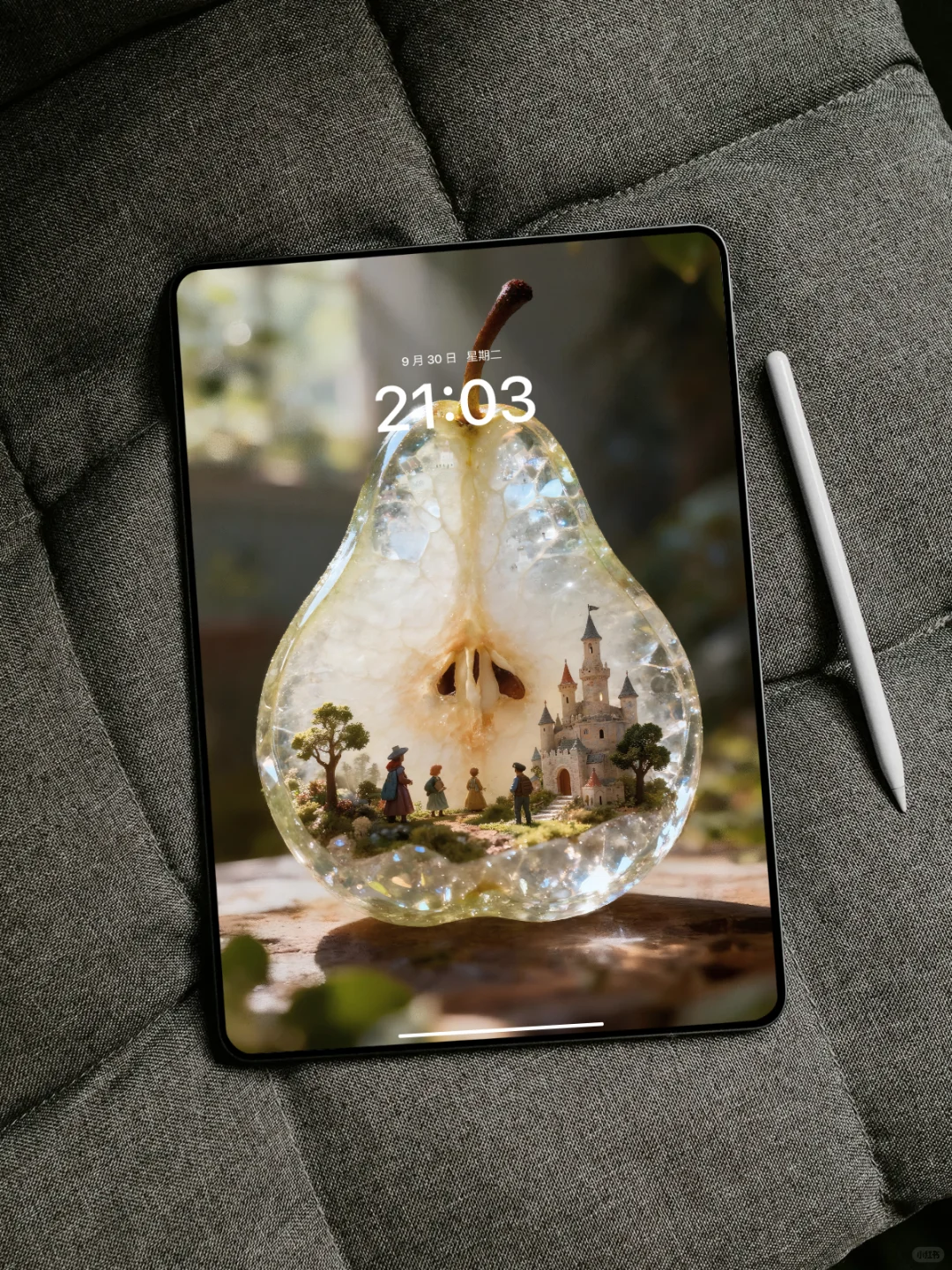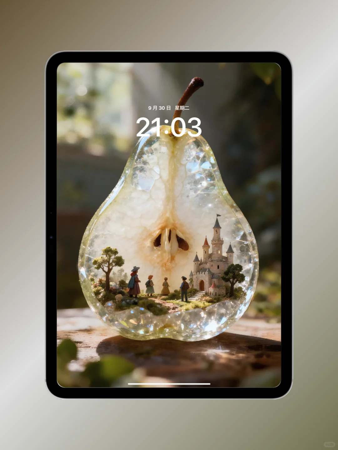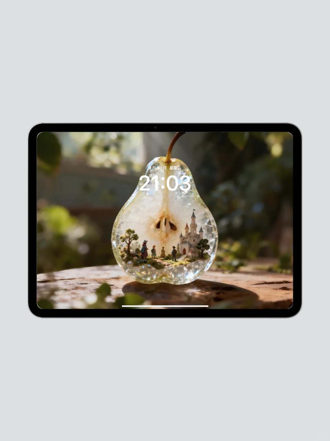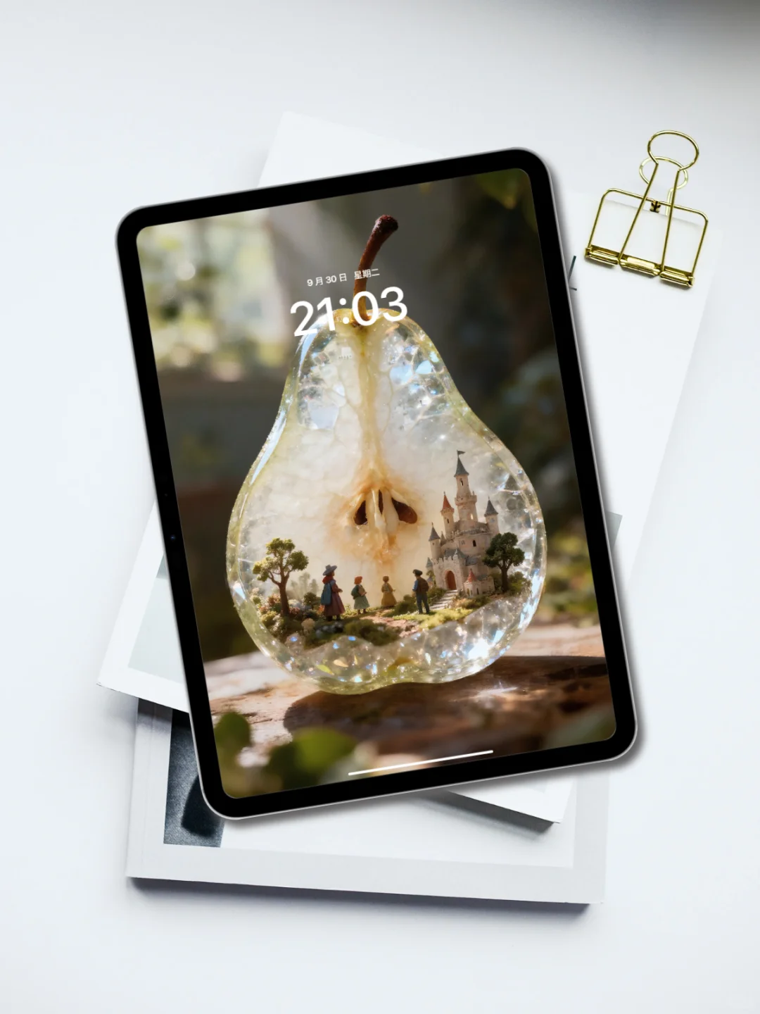 这款水晶雪梨平板壁纸展现出一个微观童话世界的美丽,每一个细节都栩栩如生,仿佛进入了一个神秘而迷人的地方