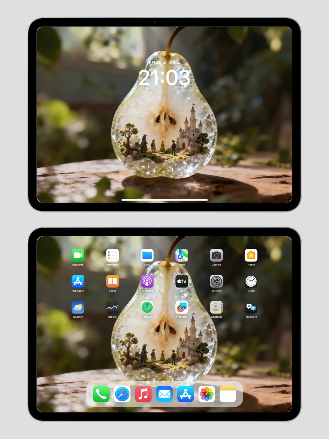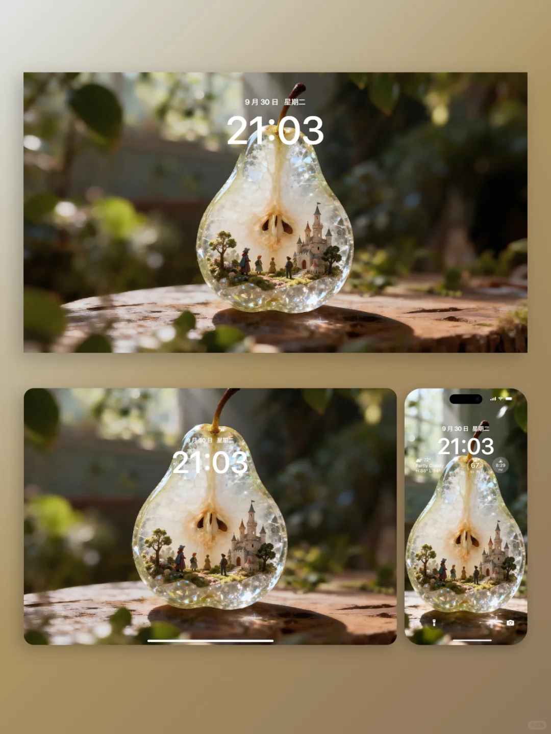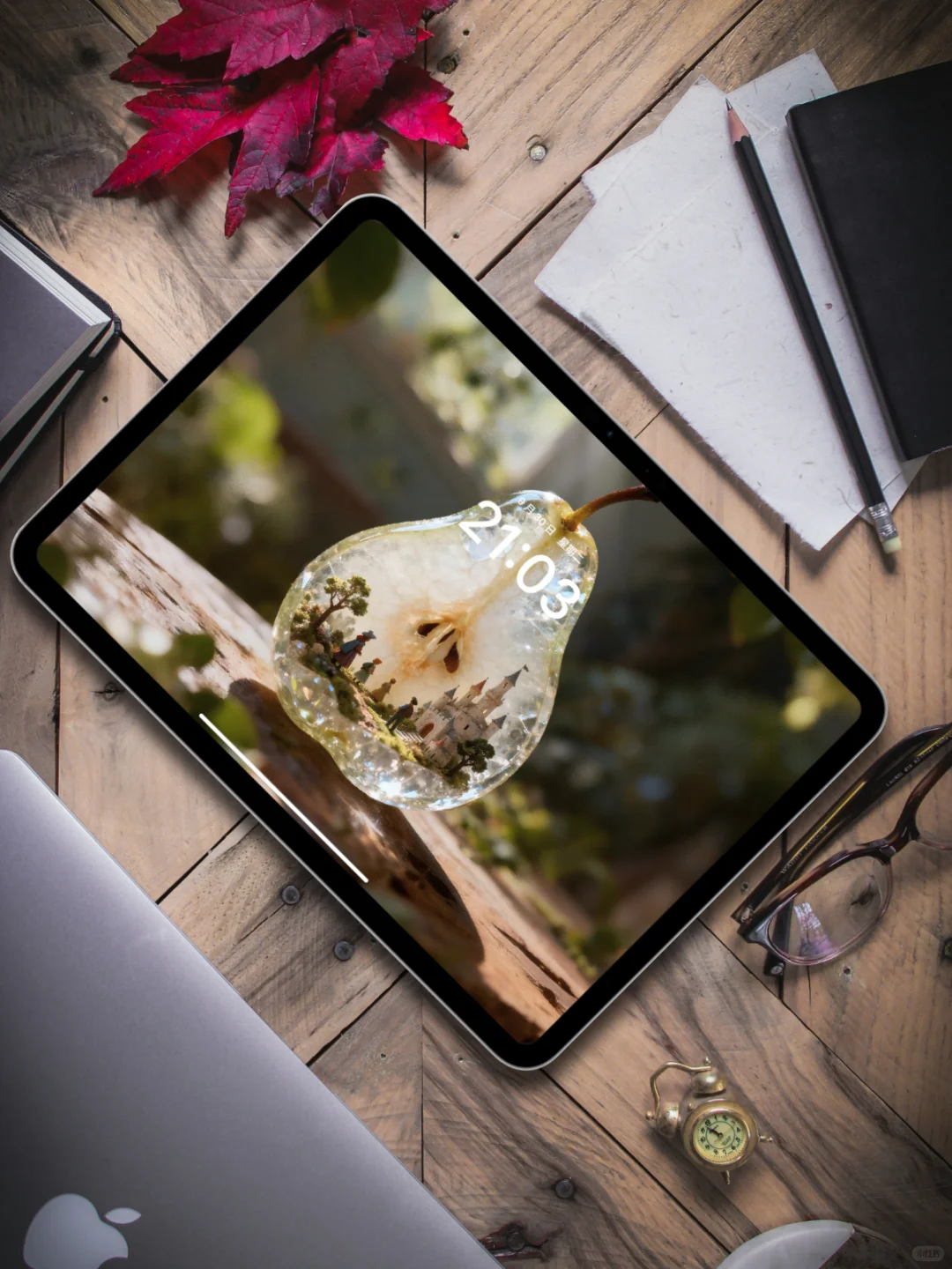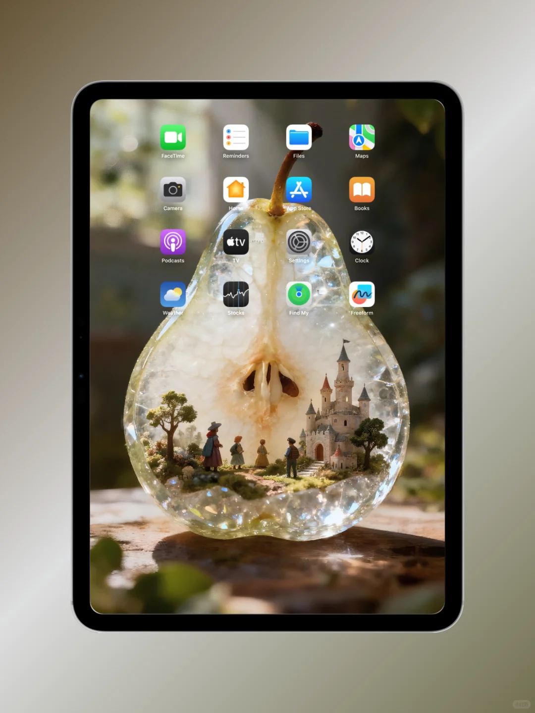 这款水晶雪梨平板壁纸展现出一个微观童话世界的美丽,每一个细节都栩栩如生,仿佛进入了一个神秘而迷人的地方