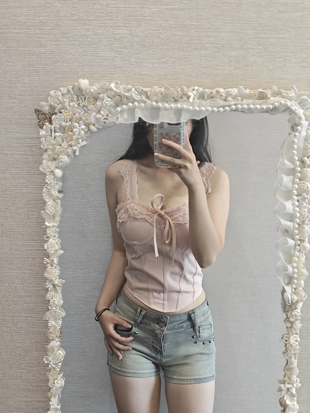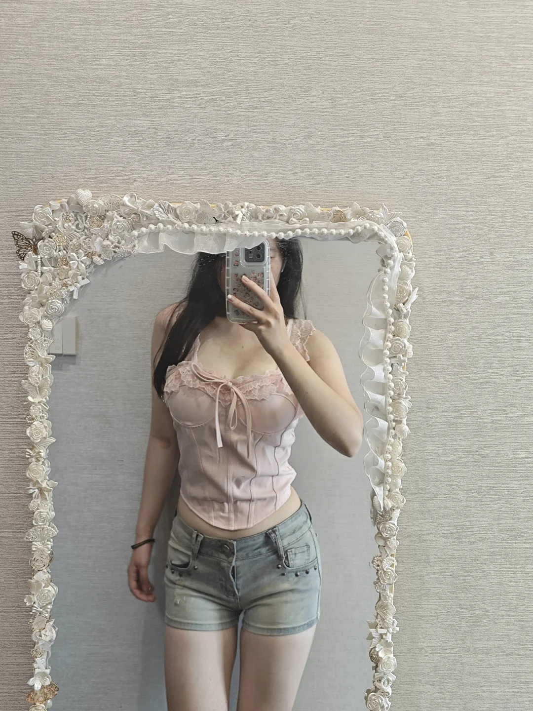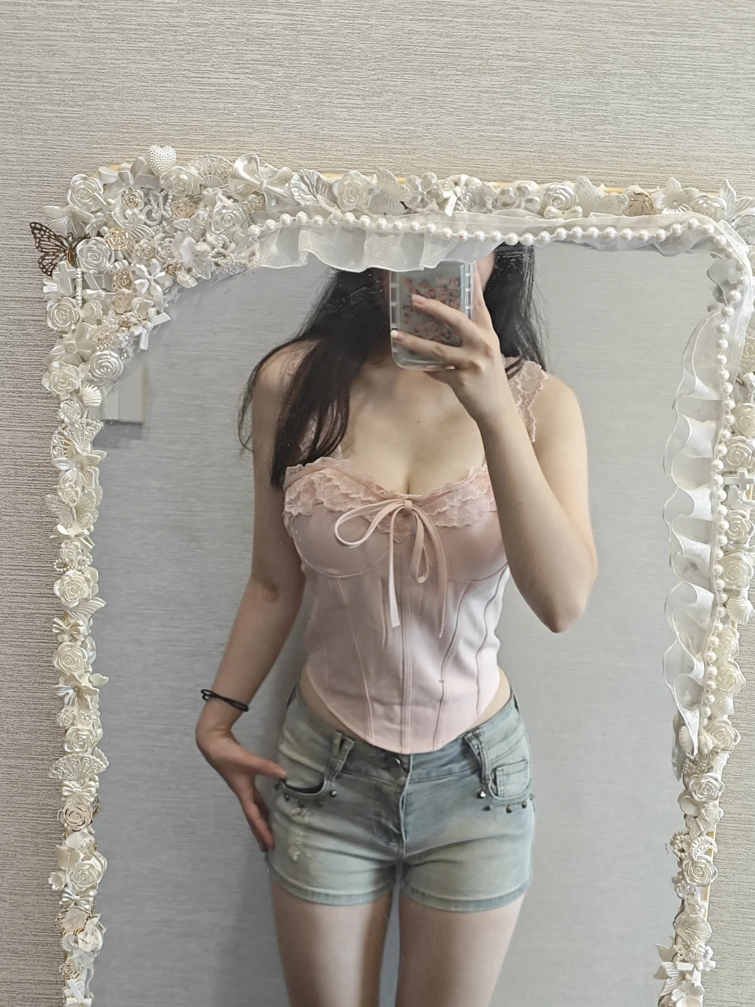 新买的粉色吊带诶!粉色的诶!好衬肤色。但是吊带日常又不咋穿。天天纠结hh