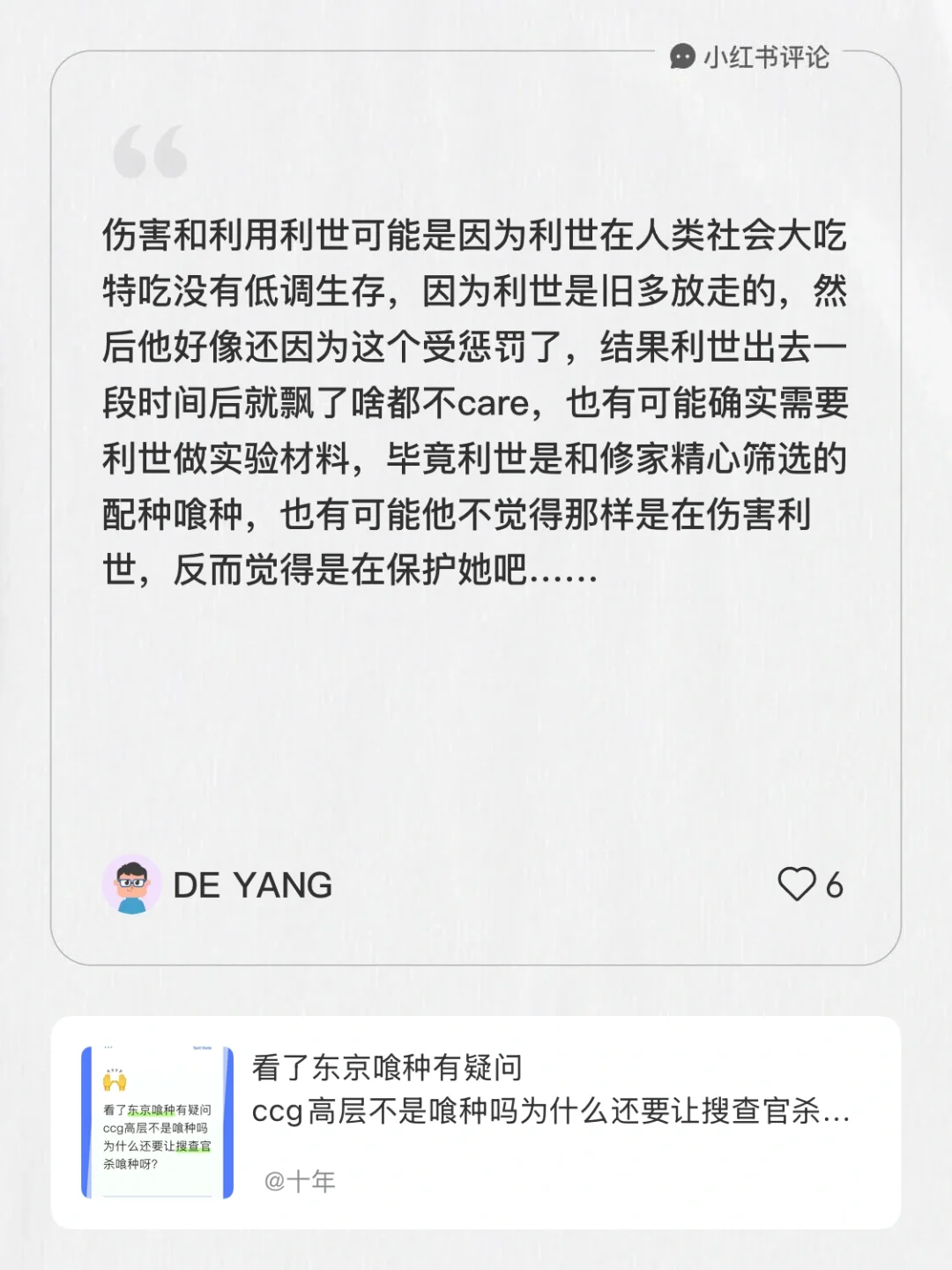 伤害和利用利世可能是因为利世在人类社会大吃特吃没有低调生存,因为利世是旧多放走的,然后他好像还因为这个受惩罚了,结果利世出去一段时间后就飘了啥都不care,也有可能确实需要利世做实验材料,毕竟利世是和修家精心筛选的配种喰种,也有可能他不觉得那样是在伤害利世,反而觉得是在保护她吧……