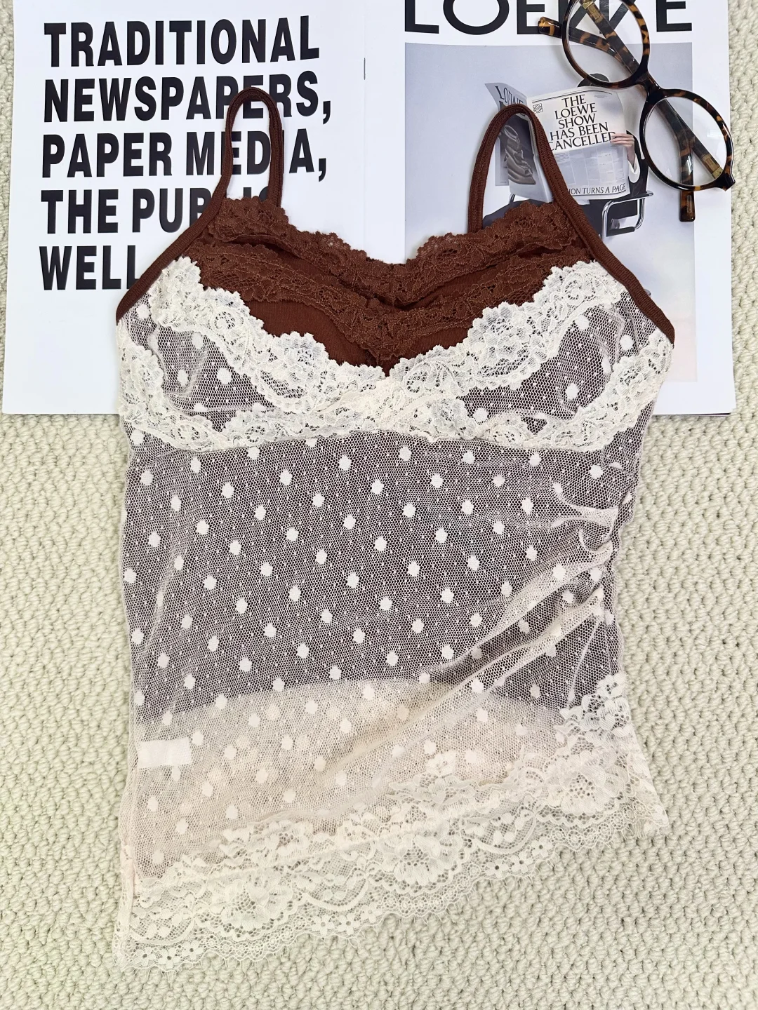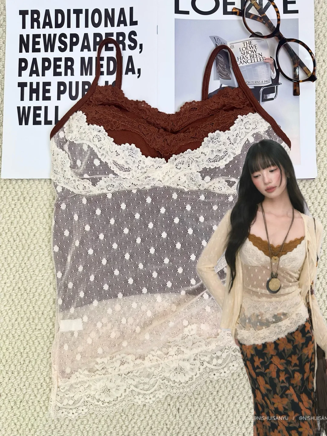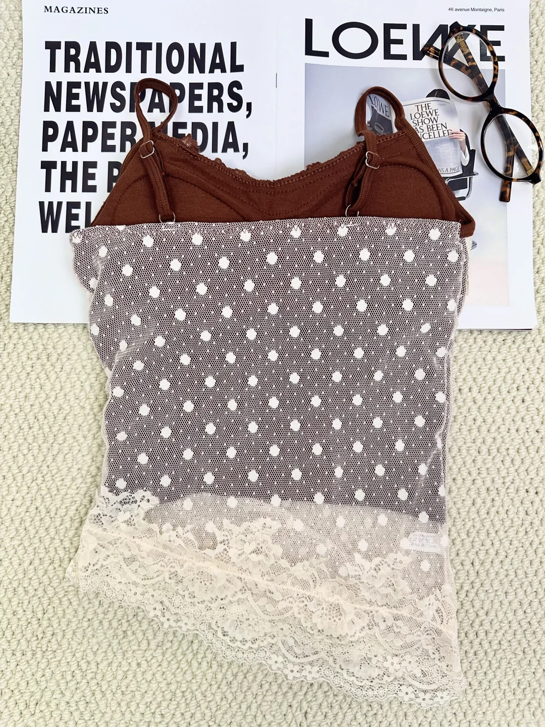 挖到宝了姐妹们!!最近入的这件蕾丝波点吊带也太绝了吧~
