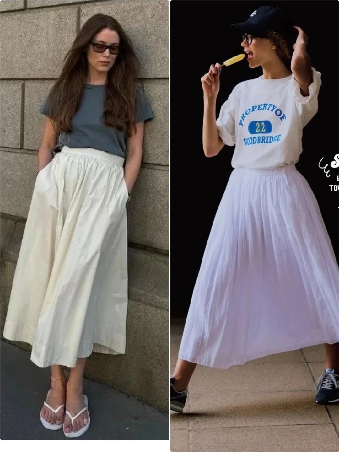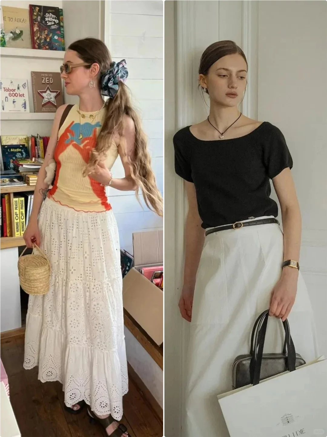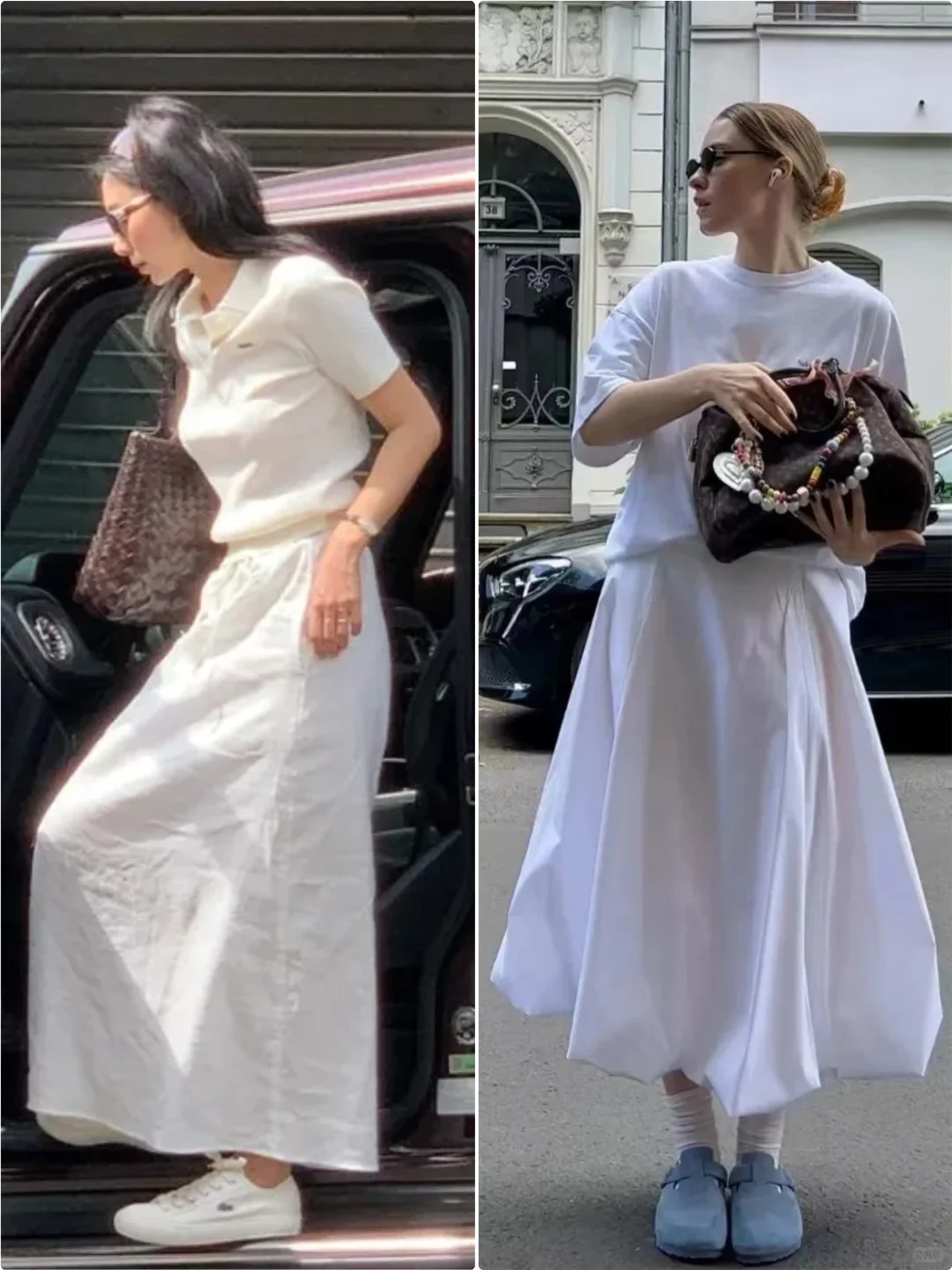 ⚪简约白裙:纯粹又干净,简约中尽显高级感。无论是搭配简约的白T,还是精致的衬衫,都能勾勒出优雅的线条,日常出街或是通勤都超合适。