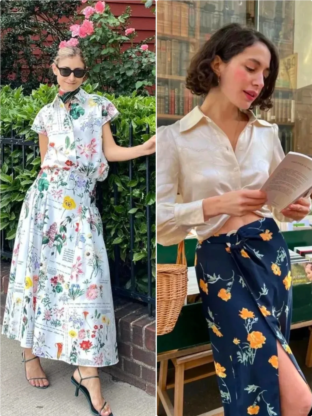 🌸碎花裙:穿上它仿佛一头扎进了春天的怀抱。五彩斑斓的碎花,像是把花园穿在了身上,走在街头,就是与自然最亲密的邂逅,氛围感直接拉满~