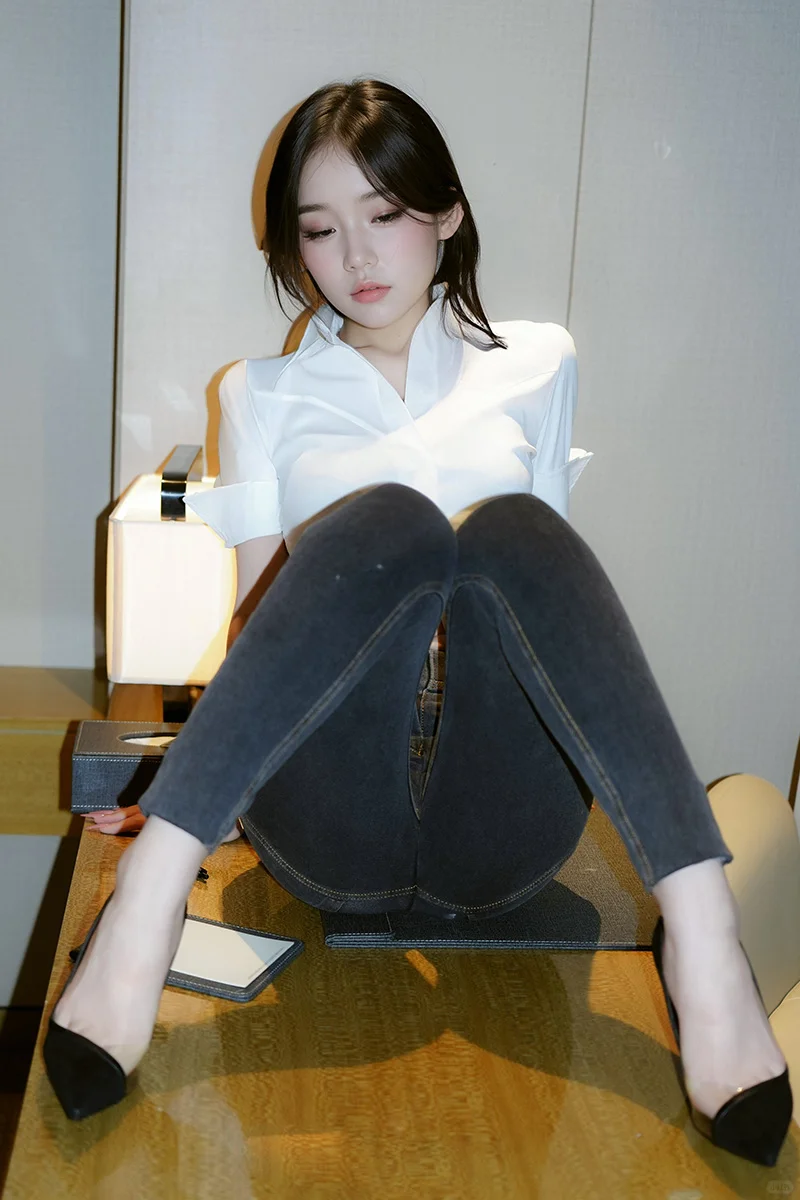 这套穿搭的精髓在于“平衡”:白衬衫的甜、牛仔裤的辣、高跟鞋的雅,三者交织出层次丰富的视觉盛宴。不用刻意扮成熟,也无需故作可爱,就这么一套,把职场女性的多元魅力穿在身上——可以是会议室里逻辑清晰的女强人,也能是下午茶时光里娇俏甜美的小姐姐。