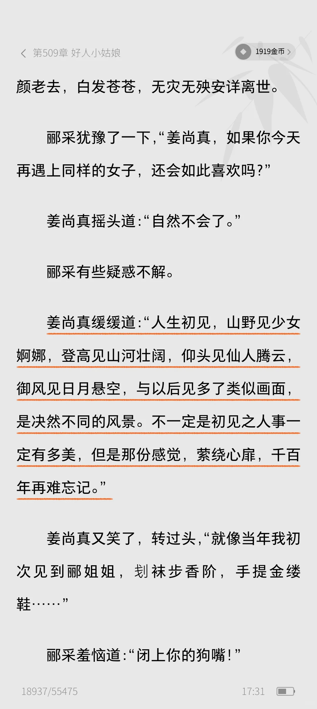 “人生初见,山野见少女婀娜,登高见山河壮阔,仰头见仙人腾云,御风见日月悬空,与以后见多了类似画面,是决然不同的风景。不一定是初见之人事一定有多美,但是那份感觉,萦绕心扉,千百年再难忘记。#剑来第一深情