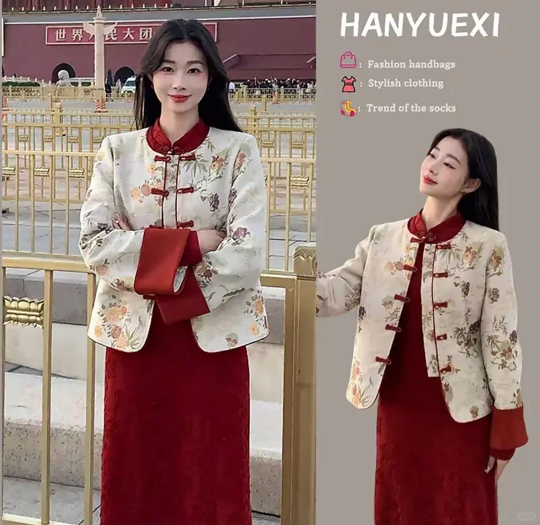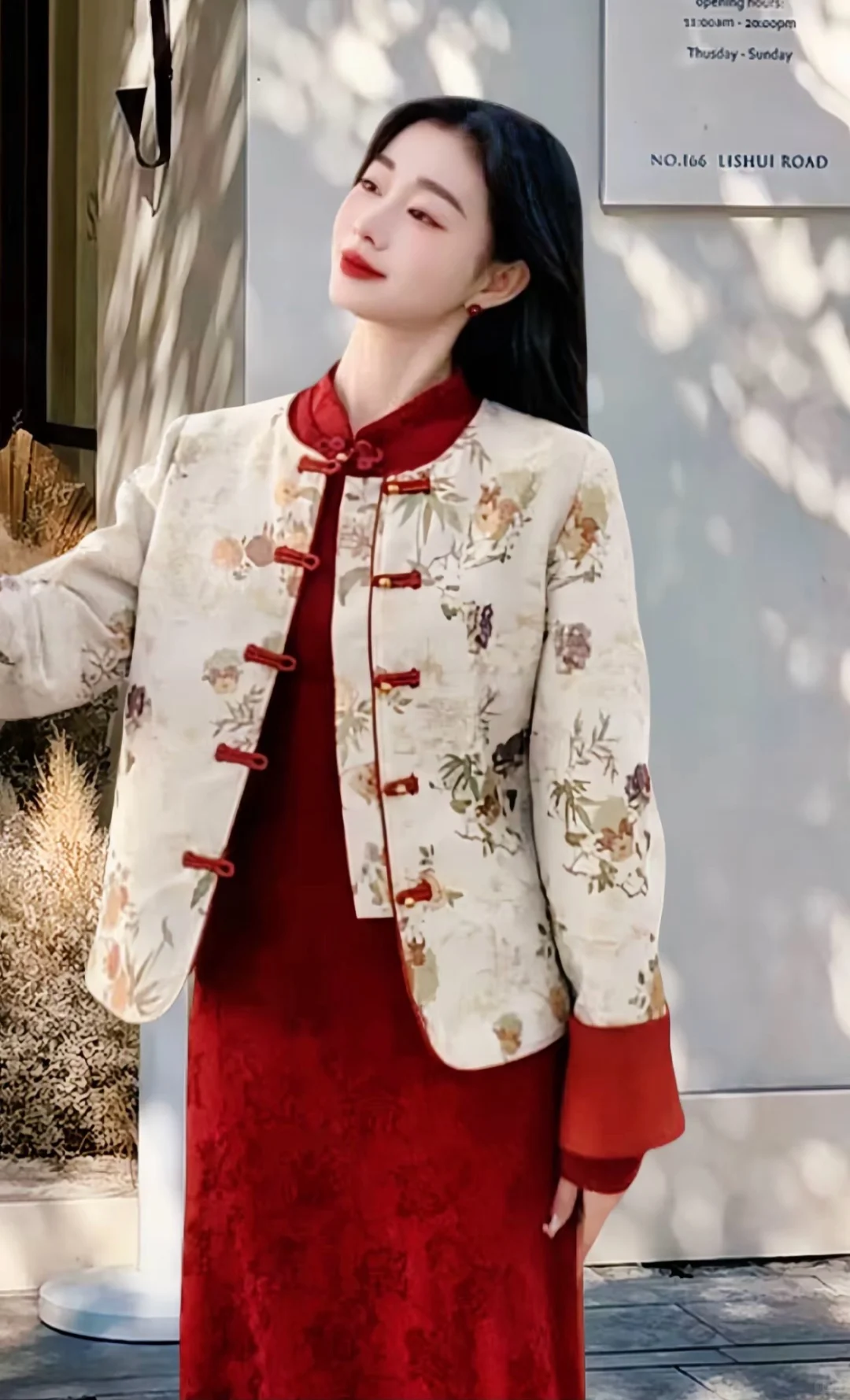 秋冬时节,它是温暖与优雅的完美结合。提花工艺赋予外套独特的质感和立体感,复古的设计元素让人仿佛穿越回过去的时光。搭配的旗袍连衣裙,更是尽显女性的婀娜身姿。精致的剪裁贴合身形,凸显出优雅的曲线。