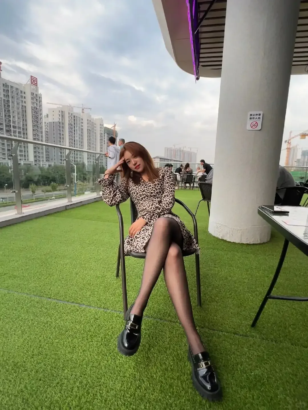 还是穿黑色袜子好,把腿给我拍的好长呀!美了,美了,好看哈