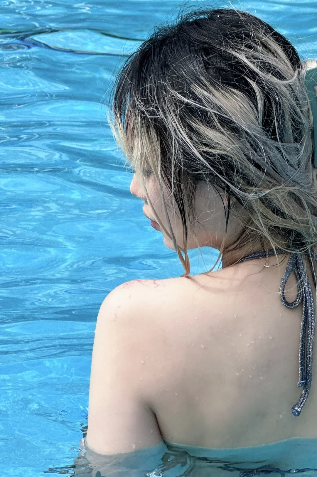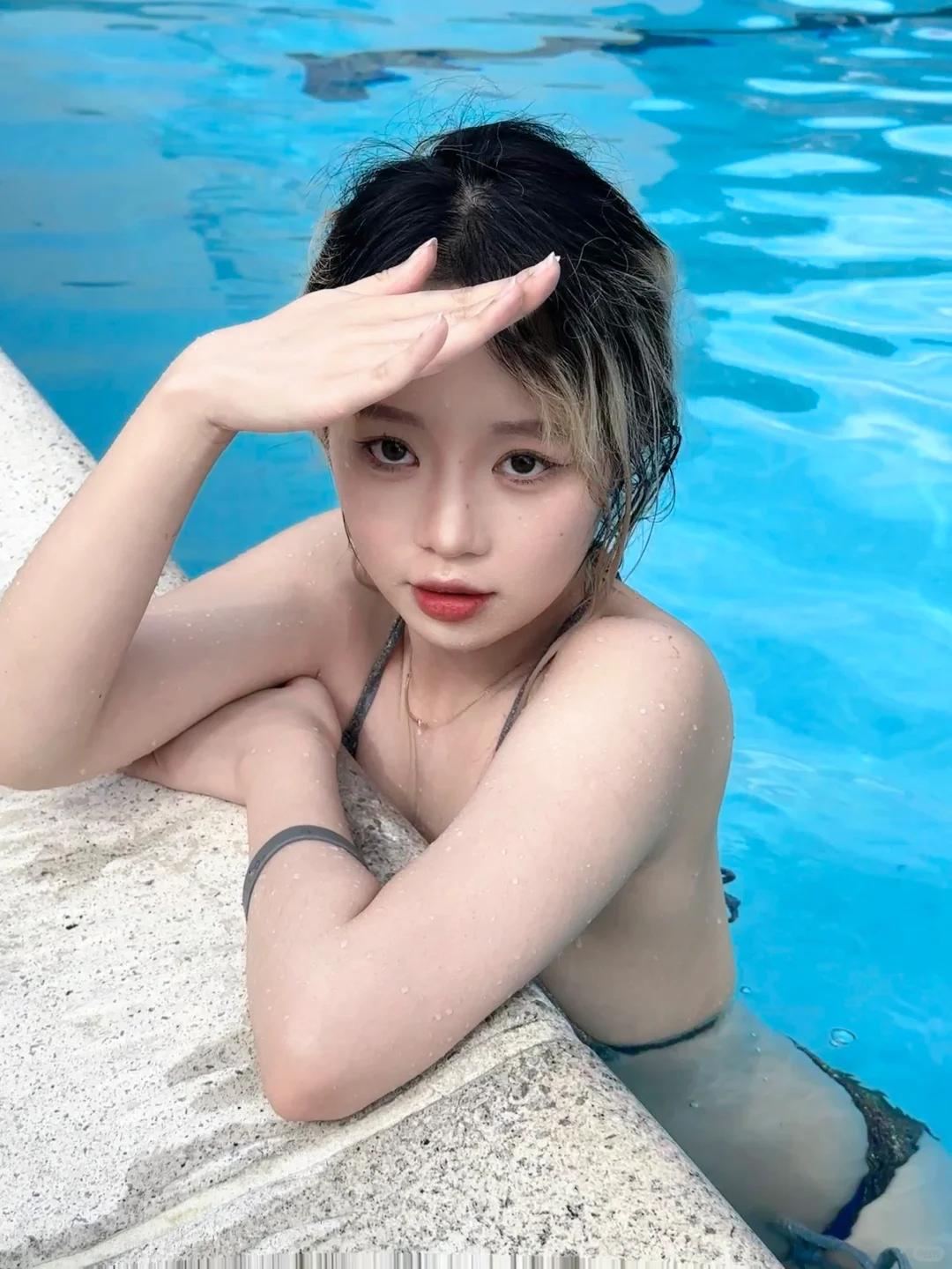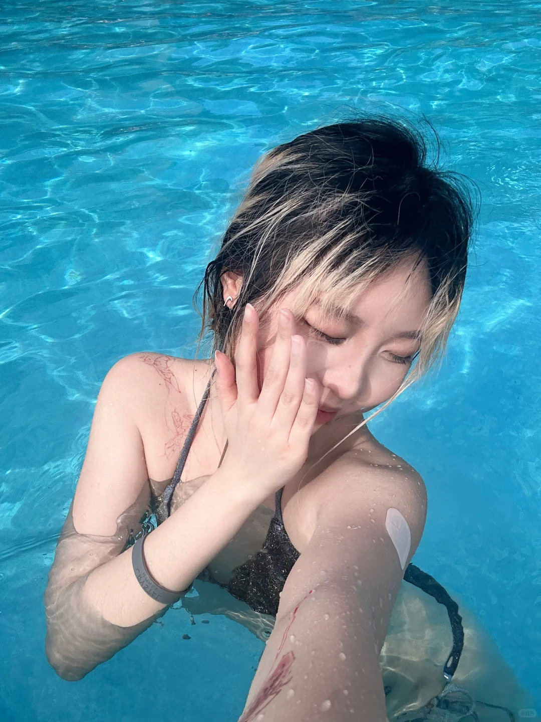 夏天就应该和男朋友一起在泳池里泡日光浴🐋