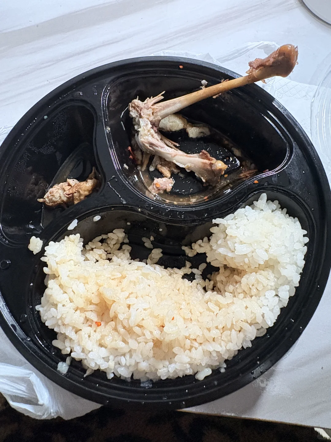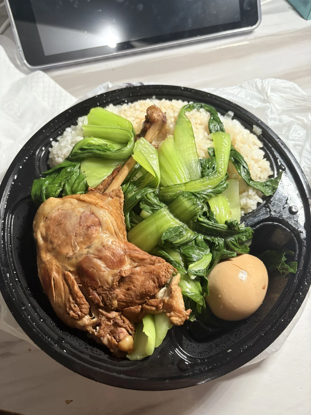 ❣️午餐12:00am:沙县鸭腿饭(备注土豆丝啥的全都换成青菜了哈哈)青菜没味加了两包辣椒面 饭后加了一瓶椰子水