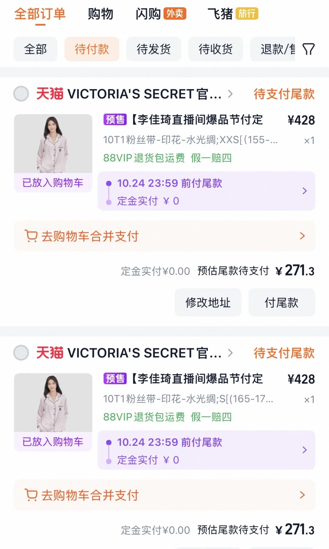 一件xxs 一件s 直接改地址