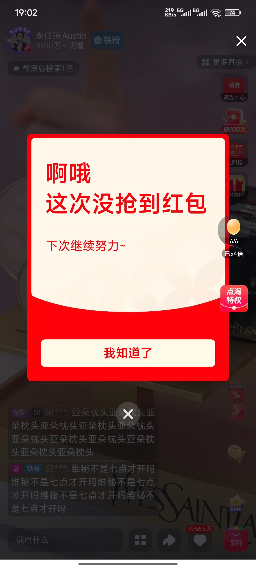 铁粉李佳琦抢了3轮4点到9点一个都没有抢到