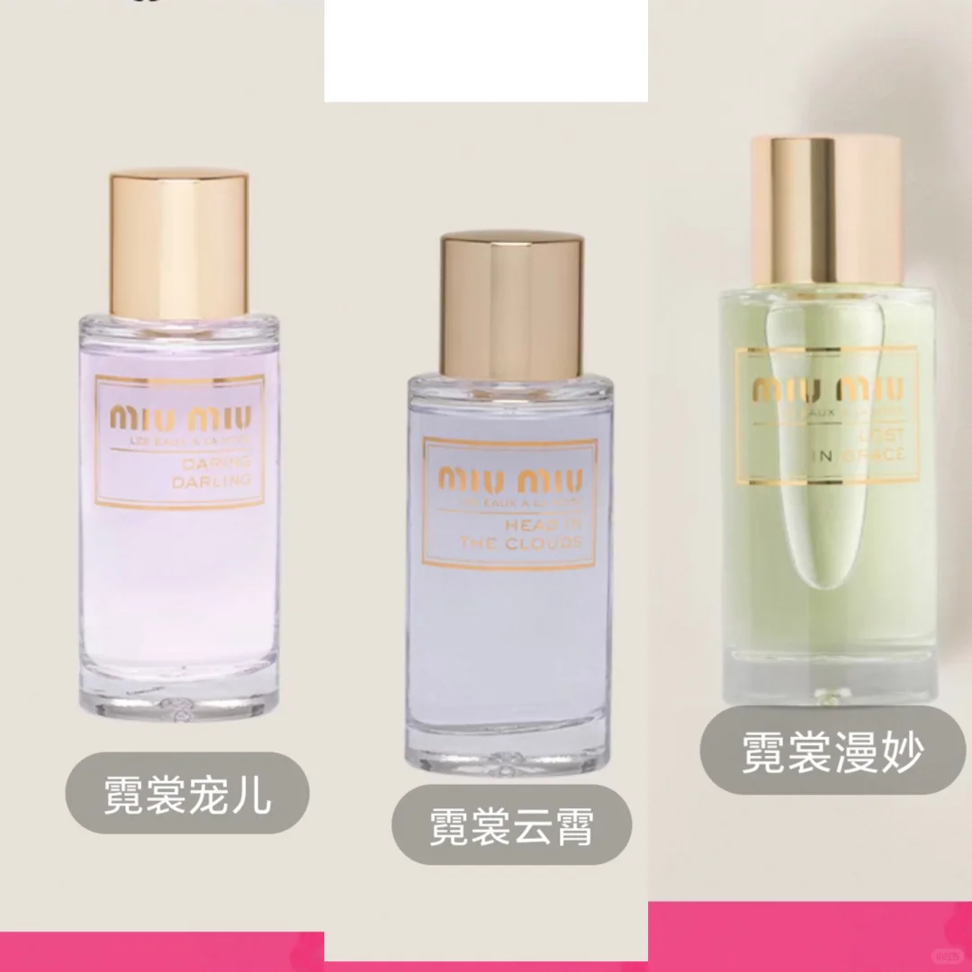 朋友今天去香港玩,购物中碰到缪缪MIUMIU这款简装版香水女神节折扣力度大,问我要不要带,犹豫不知道选哪个好又不想朋友等很久,盲选了三个味道(漫妙、云霄、宠儿),都是50ML的,不知道适不适合30+的阿姨