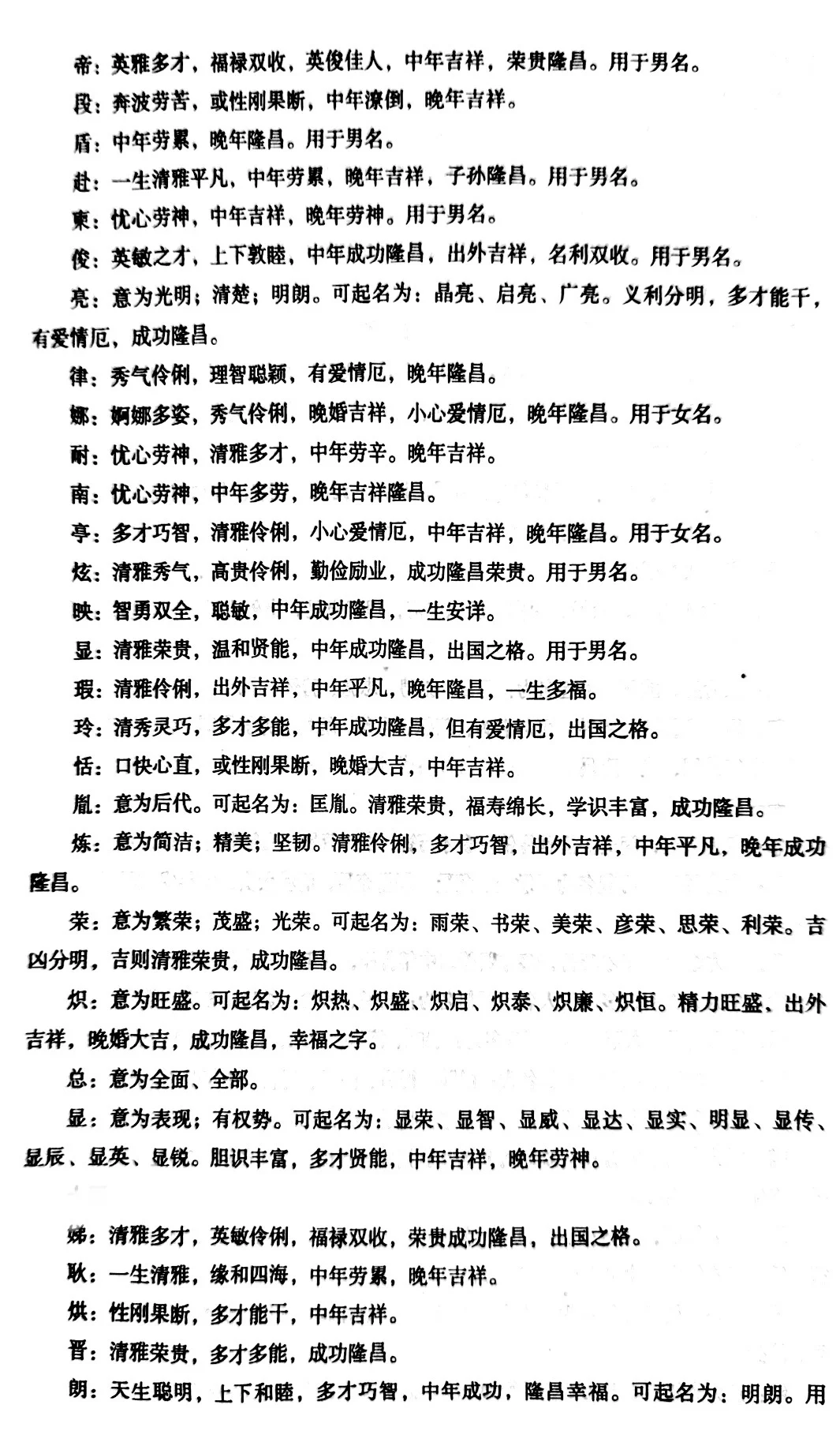 恬:口快心直,或性刚果断,晚婚大吉,中年吉祥。