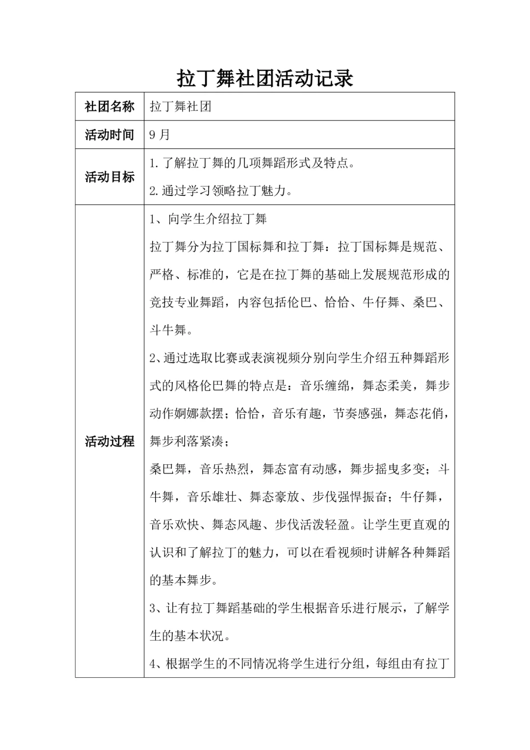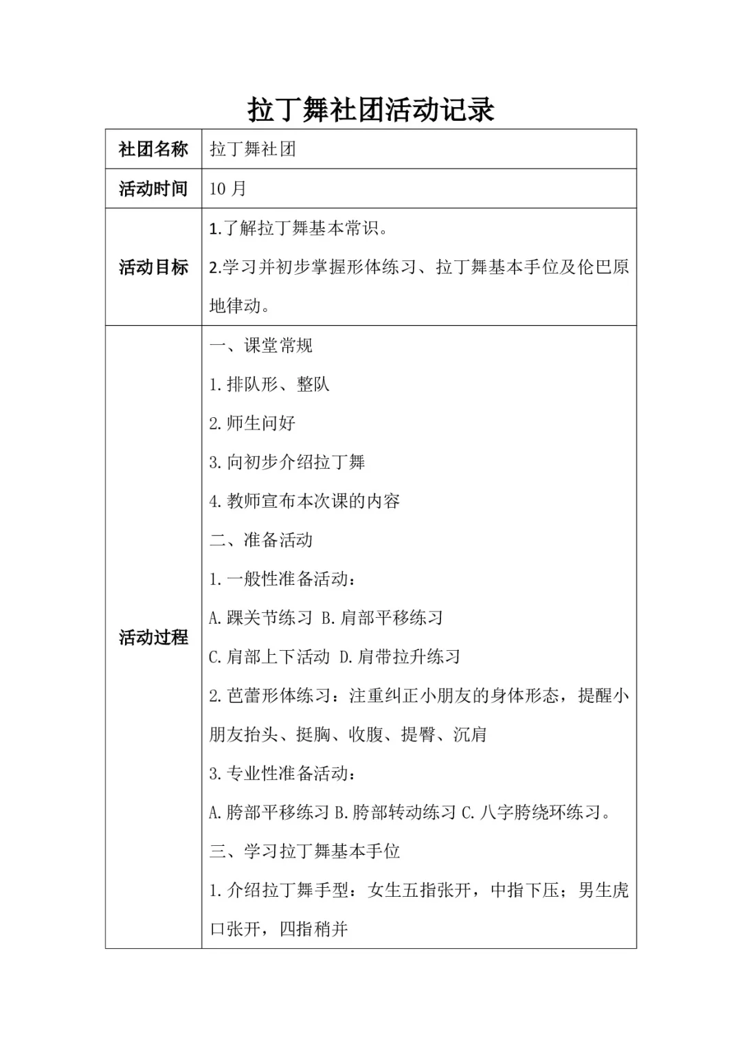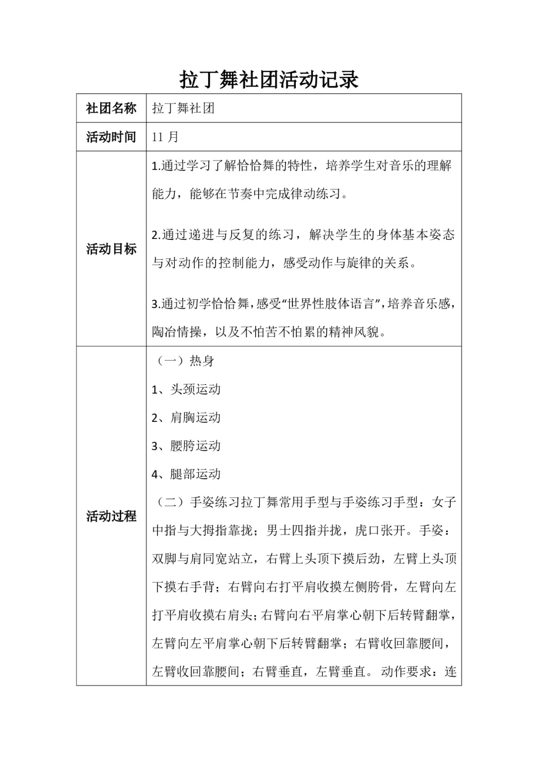 拉丁舞社团教学计划活动记录+总结 可编辑