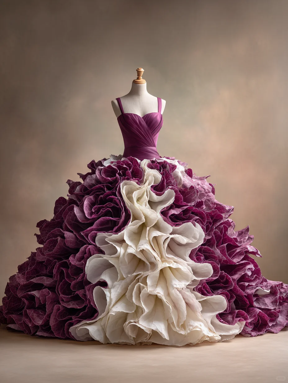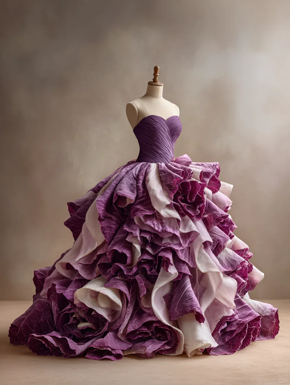 #高定礼服 #舞会礼服 #万物皆可穿 #抹胸裙 #紫甘蓝 #AIGC #梦中情裙 #设计师款 #女王范 #设计灵感