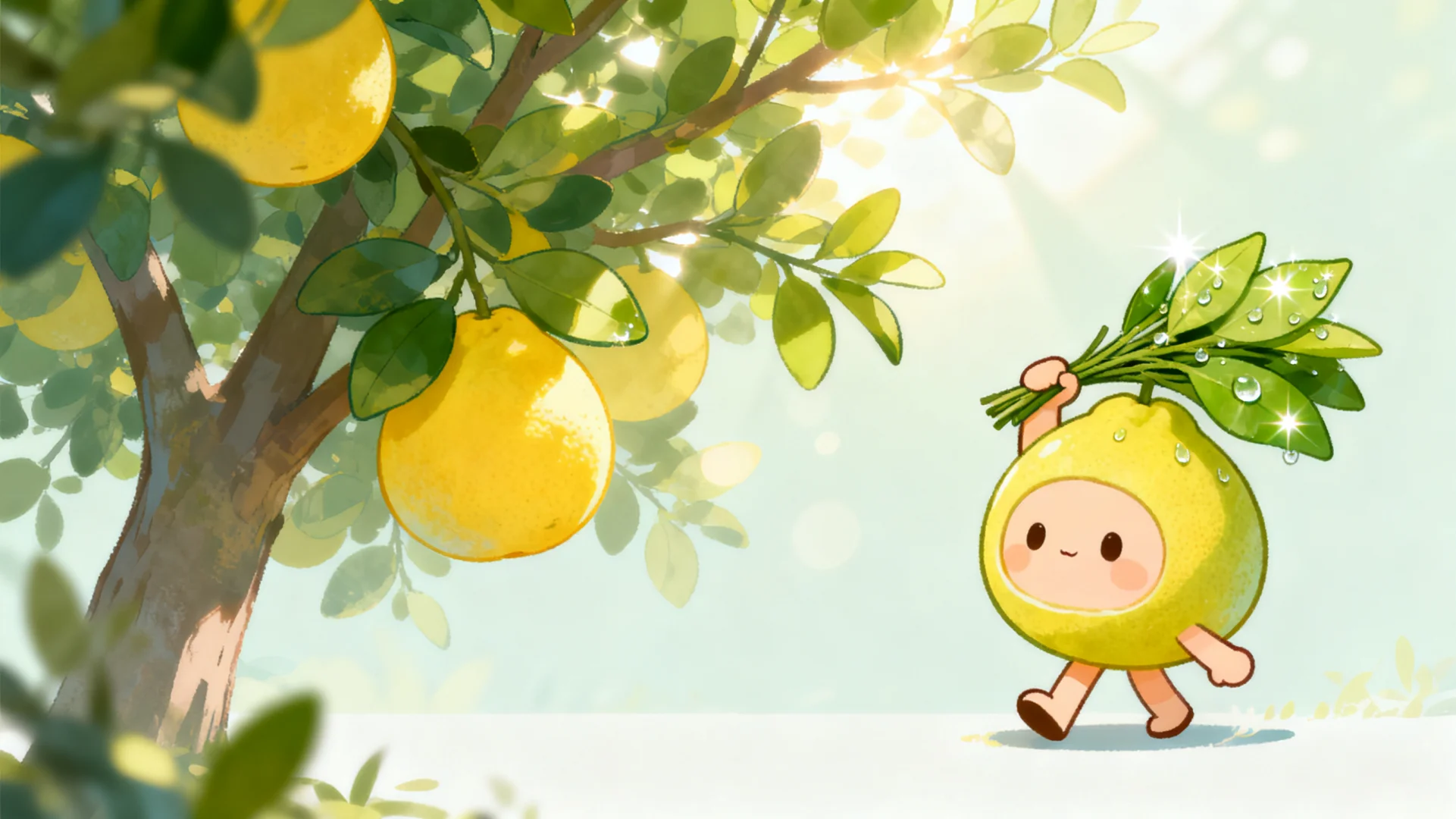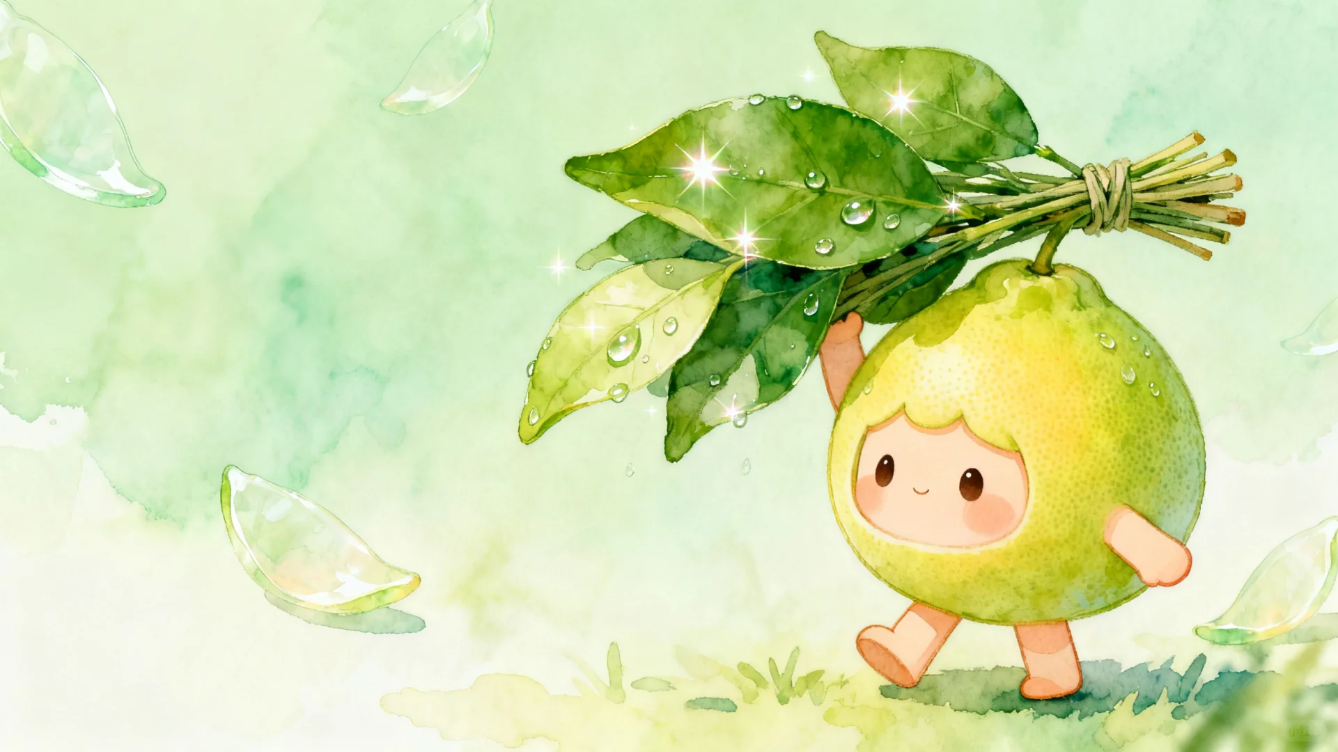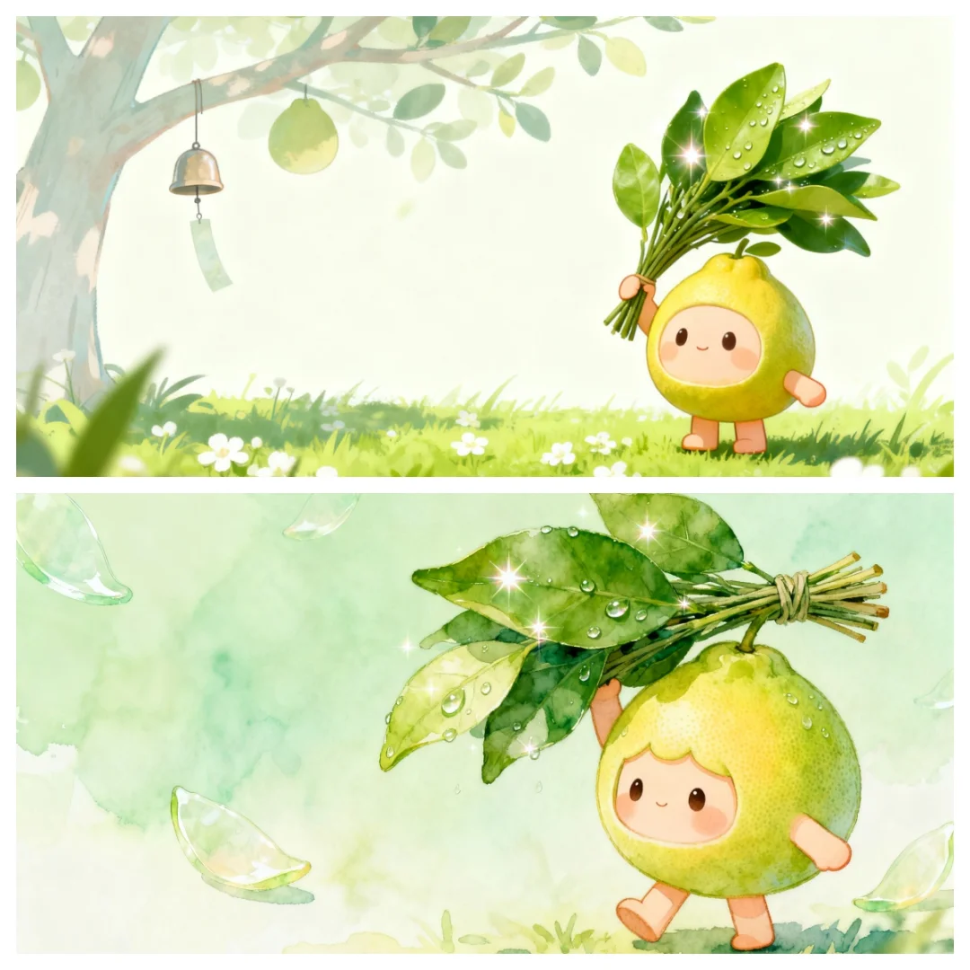 新做的这套桌面壁纸把青嫩嫩的柚子叶画得超灵动
